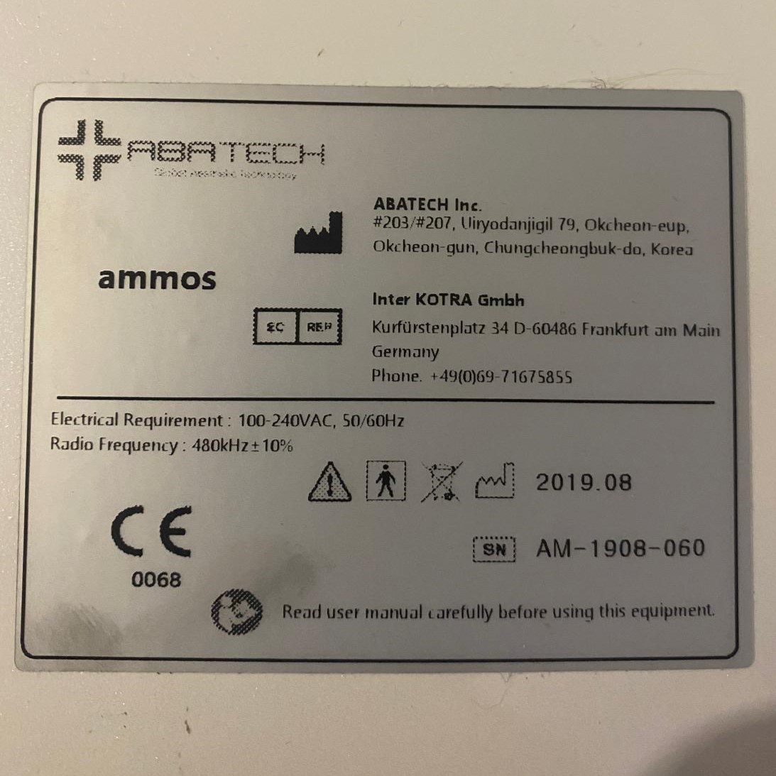 - Serial Number (SN): AM-1908-060