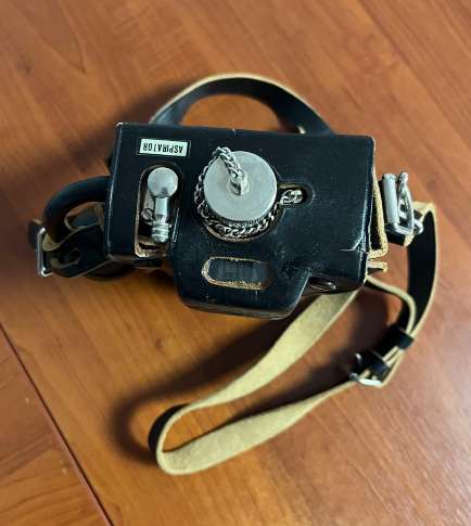 - Leather Case: The leather case maintains its integrity, but surface abrasions, color fading, and signs of use are noticeable. The stitching and rivets appear solid. The carrying strap shows wear due to friction.