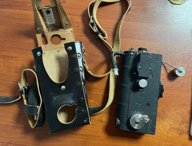 The outer casing of the device features movable parts (adjustment screw, key mechanism). The knobs appear to be in place. The chains of the protective covers are not broken, and their attachment points are solid.