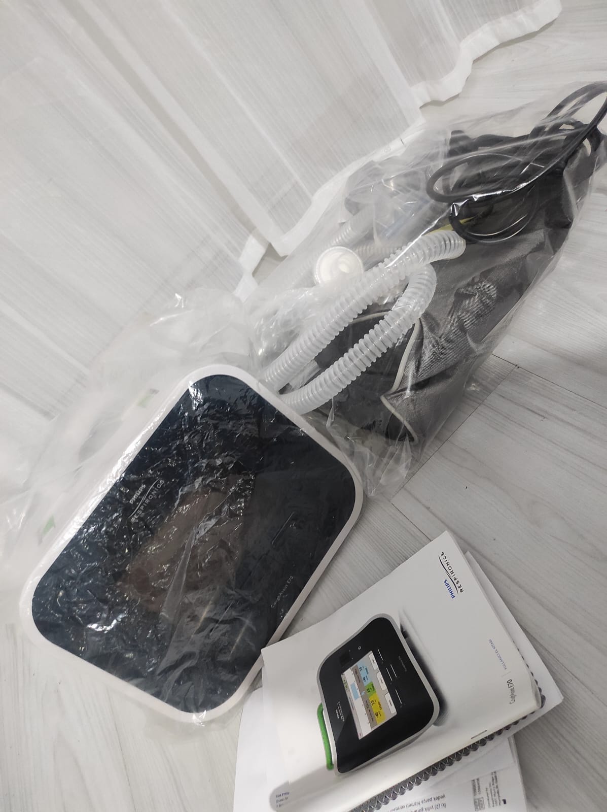 The device’s outer casing, color harmony, logo placement on the panel, and the typography of the accompanying documents are fully compliant with original PHILIPS RESPIRONICS standards. No indication of an aftermarket or counterfeit product has been found.
