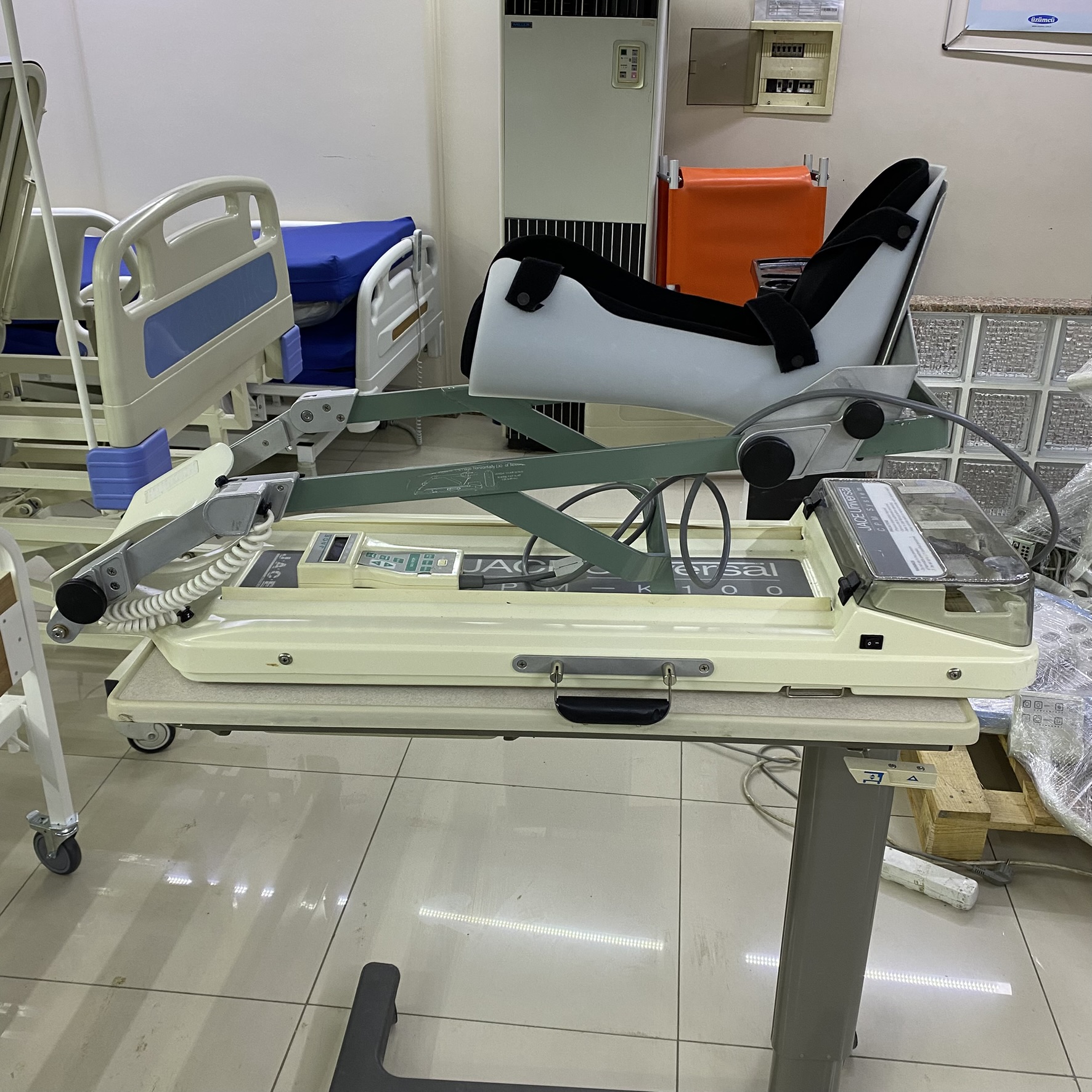 - Model: Universal K100 (The inscription “K 1 0 0” is readable directly below the word “Universal” on the leg rest/mat part of the device. Furthermore, the model family “JACE Universal CPM System” is explicitly stated on the labels on the transparent cover.)
