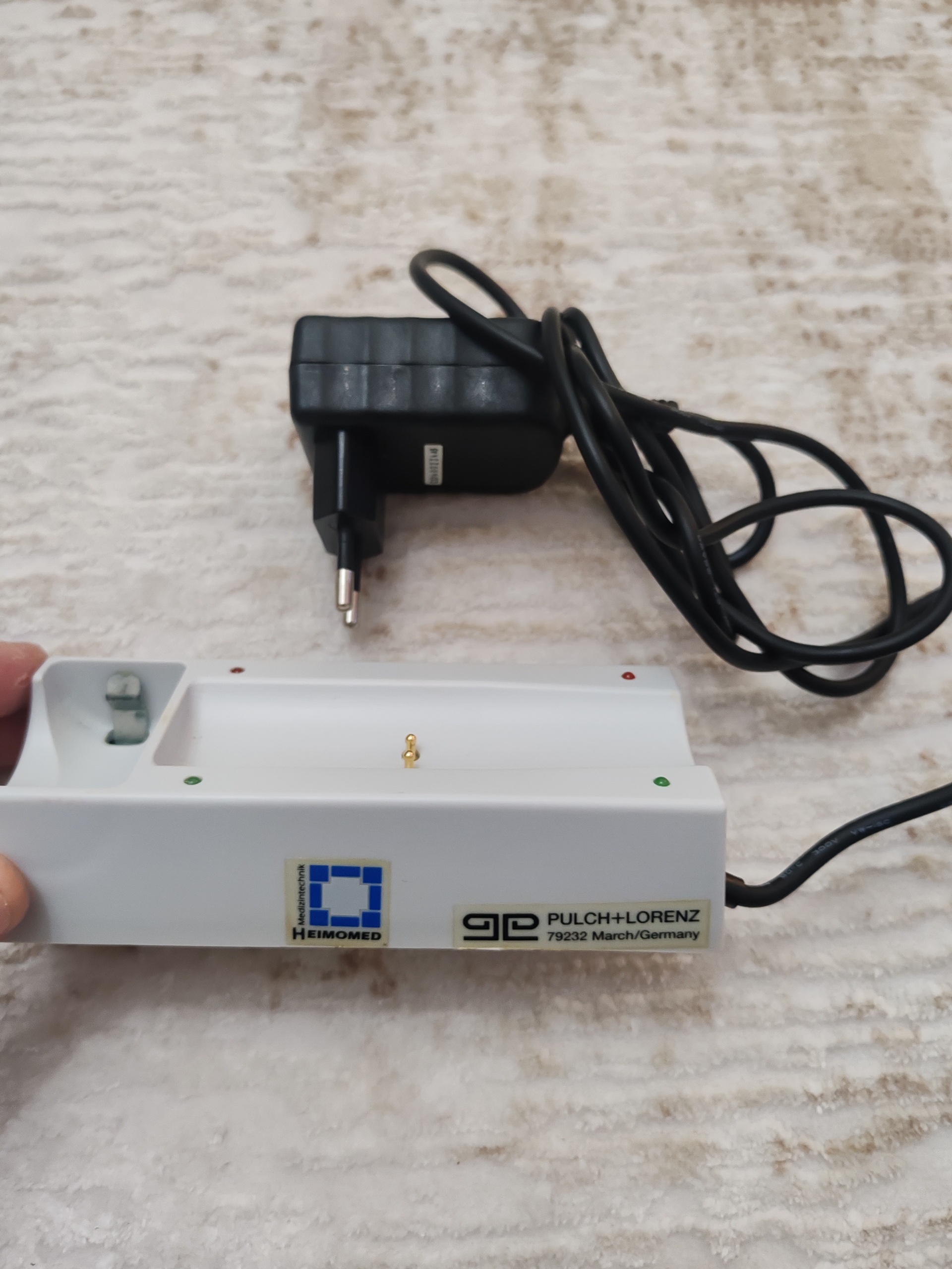 - Charging Unit: The charging unit features “SERVOX”, “PULCH+LORENZ”, and “HEIMOMED” logos and texts. This unit is designed for Servox devices.