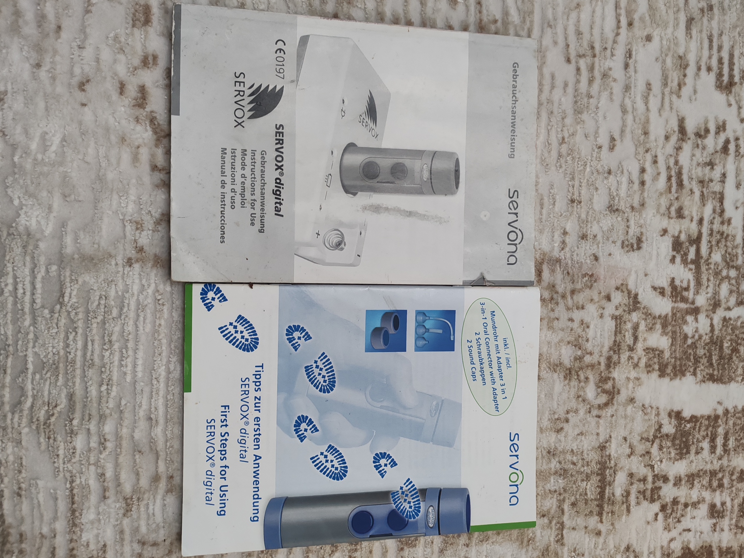 - Speech Device 1: The labels “Servox” and “digital” are clearly legible on the device and in the user manual. The brand is Servox, and the model is Digital.