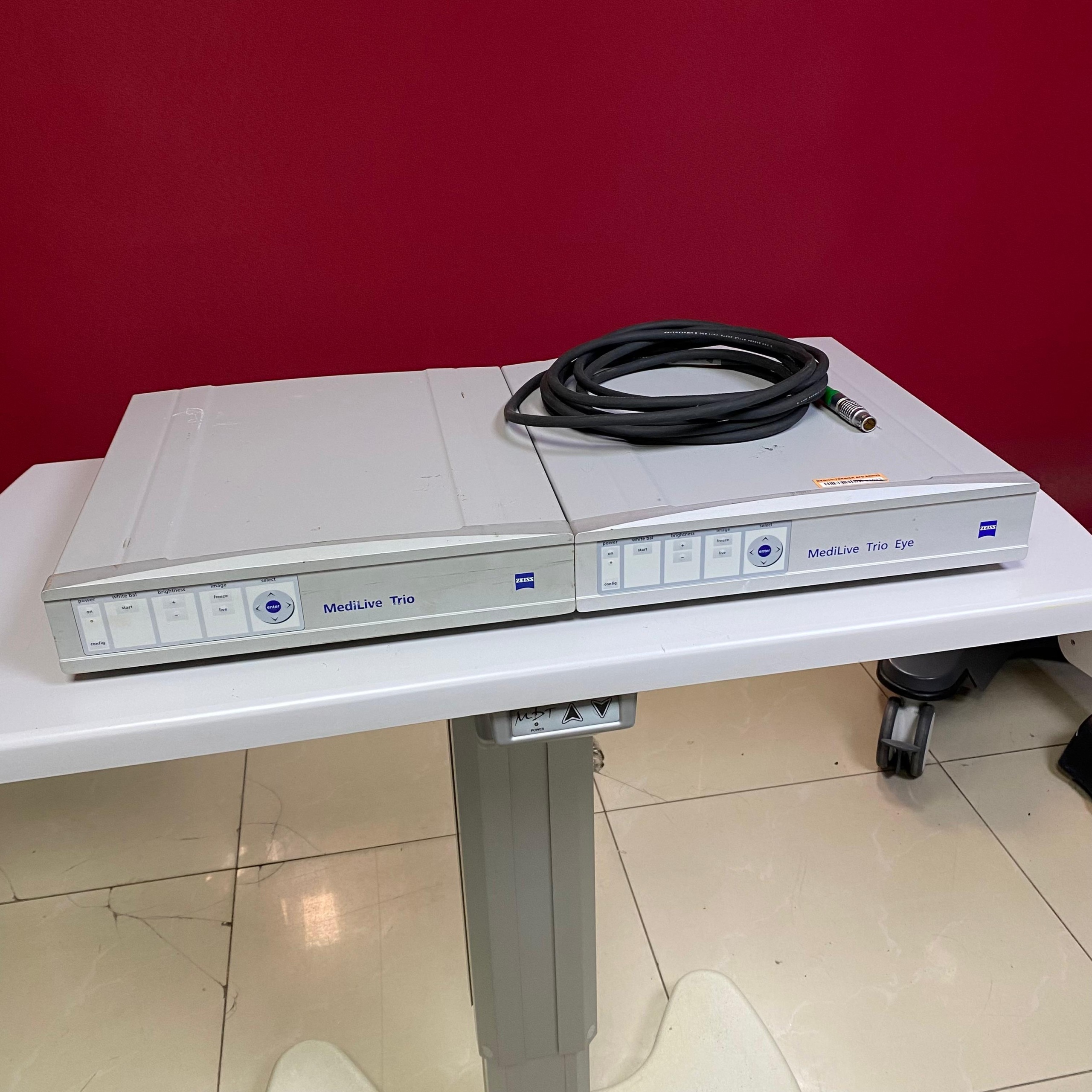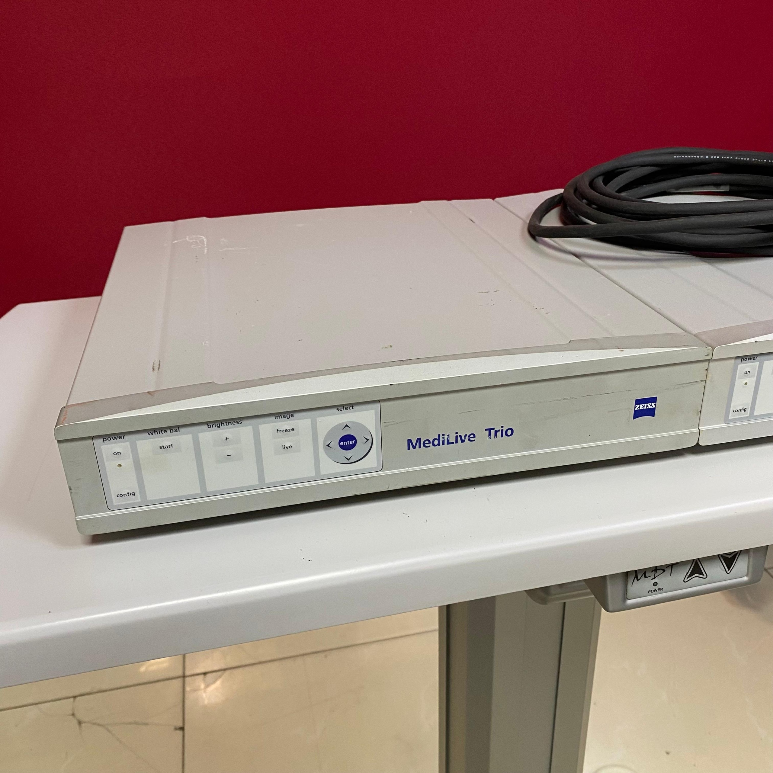 - Although the devices appear as a set, “Trio” and “Trio Eye,” a suitable camera head is required for these systems to function. These control units alone cannot capture images; it should be verified whether a camera head is included in the system (it is unclear from the coiled structure whether there is a head at the end of the visible cable).