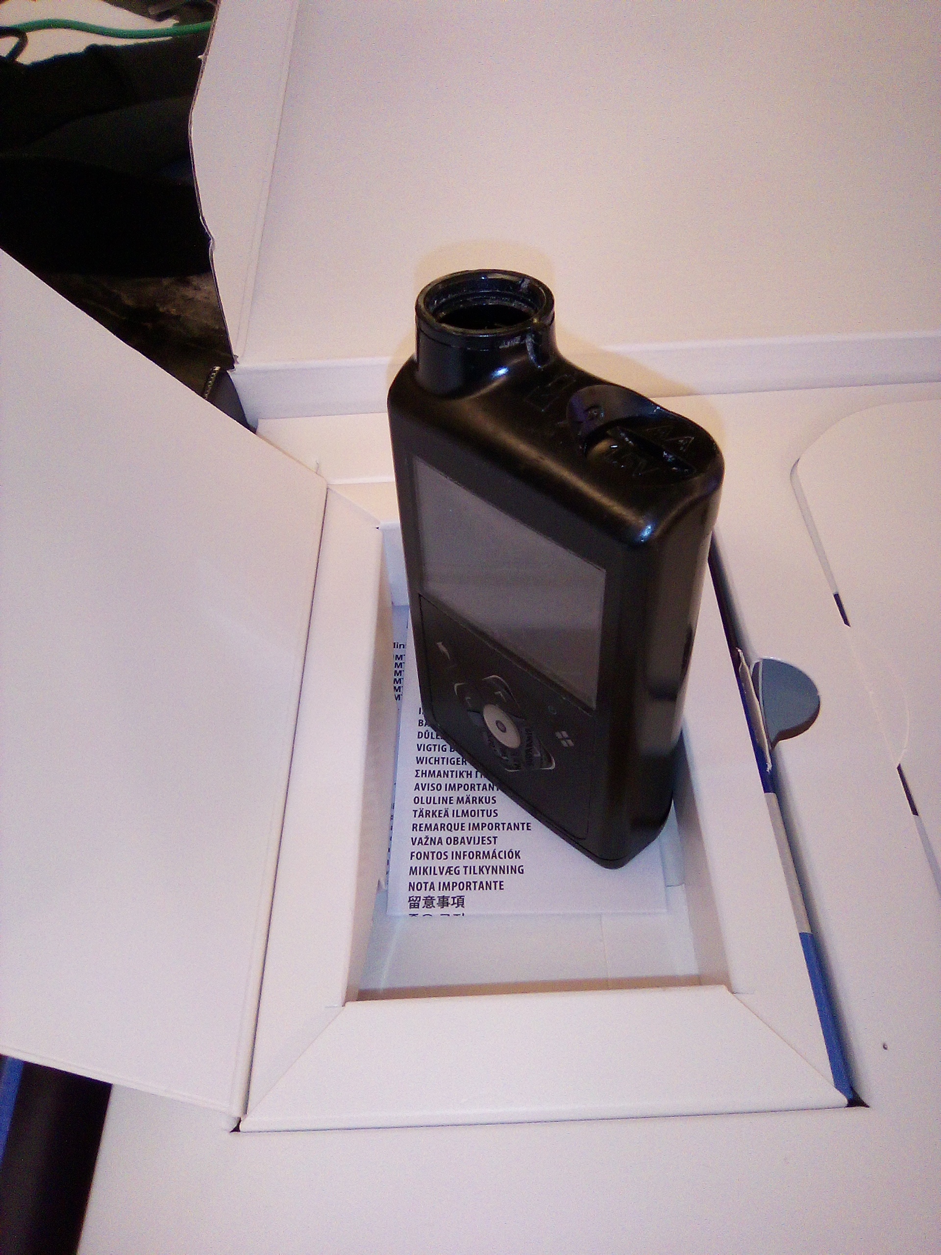 The device screen is black/off. There are no error codes, warnings, or menu visuals on the screen. The screen surface is smooth.