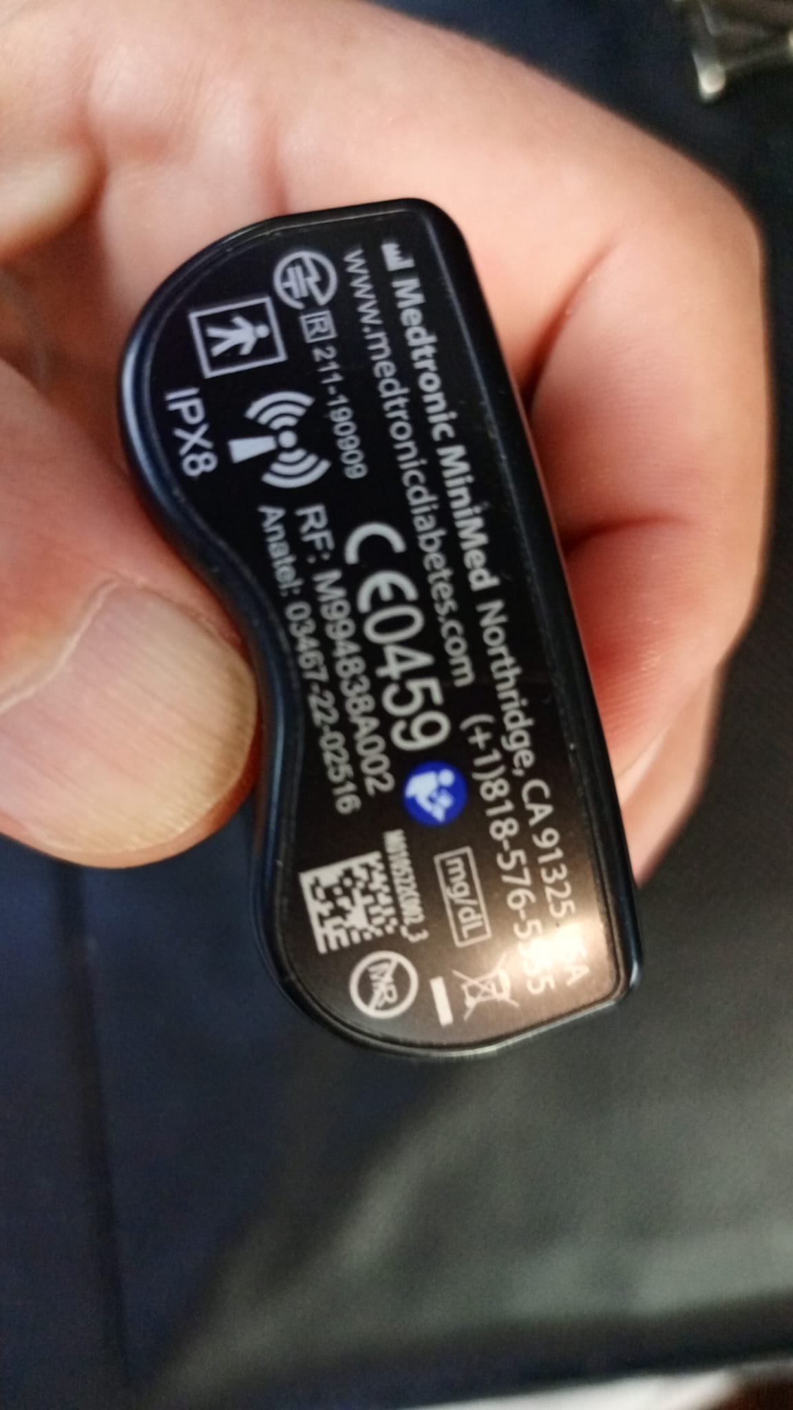 - Model Identification: Based on technical verification, taking the device’s interface design (Blue shield icon, graphical structure), Bluetooth feature, and the codes “REF M994838A002” and “Anatel 03467-22-02516” on the rear label as reference, the product has been identified as an insulin pump belonging to the Medtronic MiniMed 780G system.