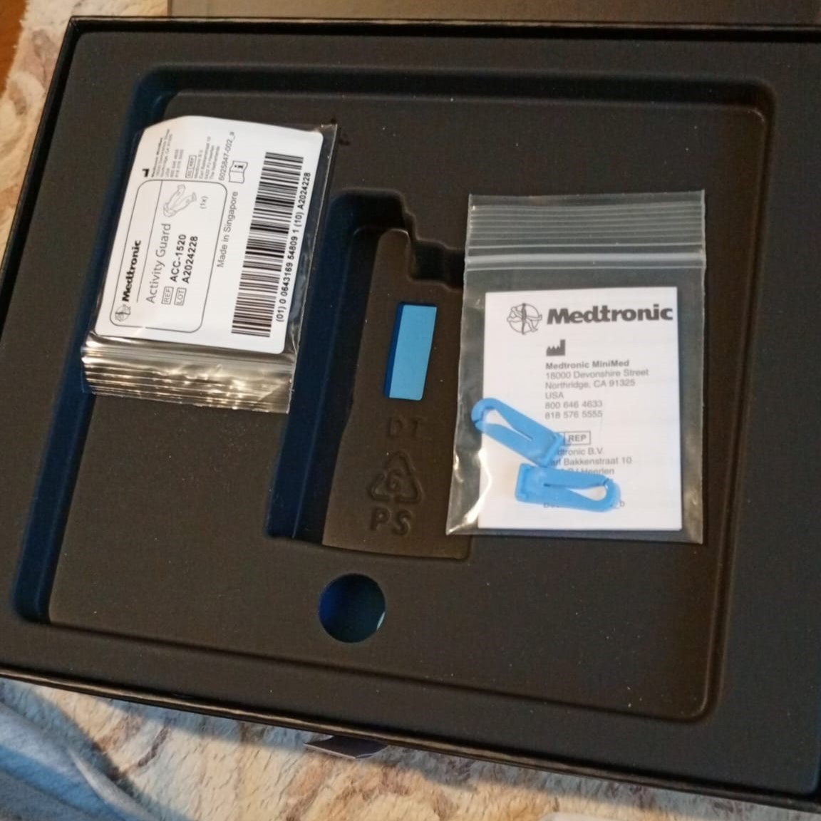 - 1 Activity Guard: In its original sealed packaging (with Medtronic logo). Label Information: REF ACC-1520. This part is used to prevent accidental presses of the device’s buttons or to secure it with a clip.