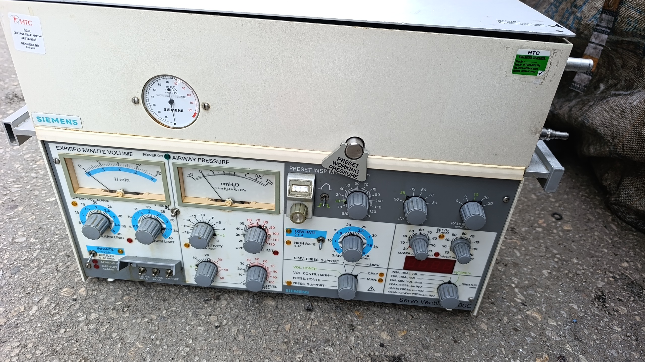 - Institution Label: The white label in the upper left corner contains the text “HTC ÖZEL ÇEKİRGE KALP ARİTMİ HASTANESİ” and the inventory number “DEMİRBAŞ NO 161538”.