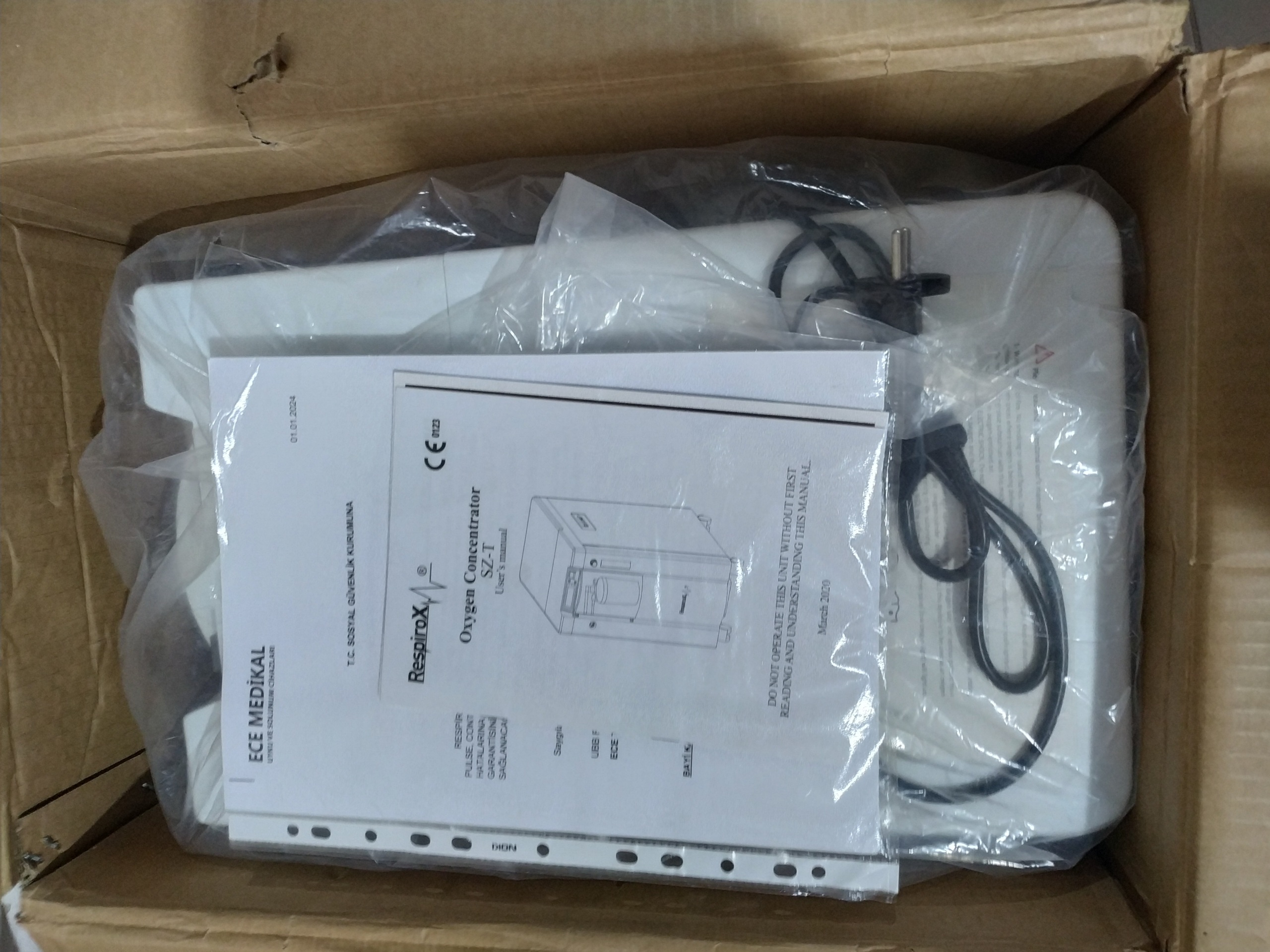 - User Manual: A user manual titled “RespiroX Oxygen Concentrator SZ-T” is present. The date “March 2020” is readable on the manual.