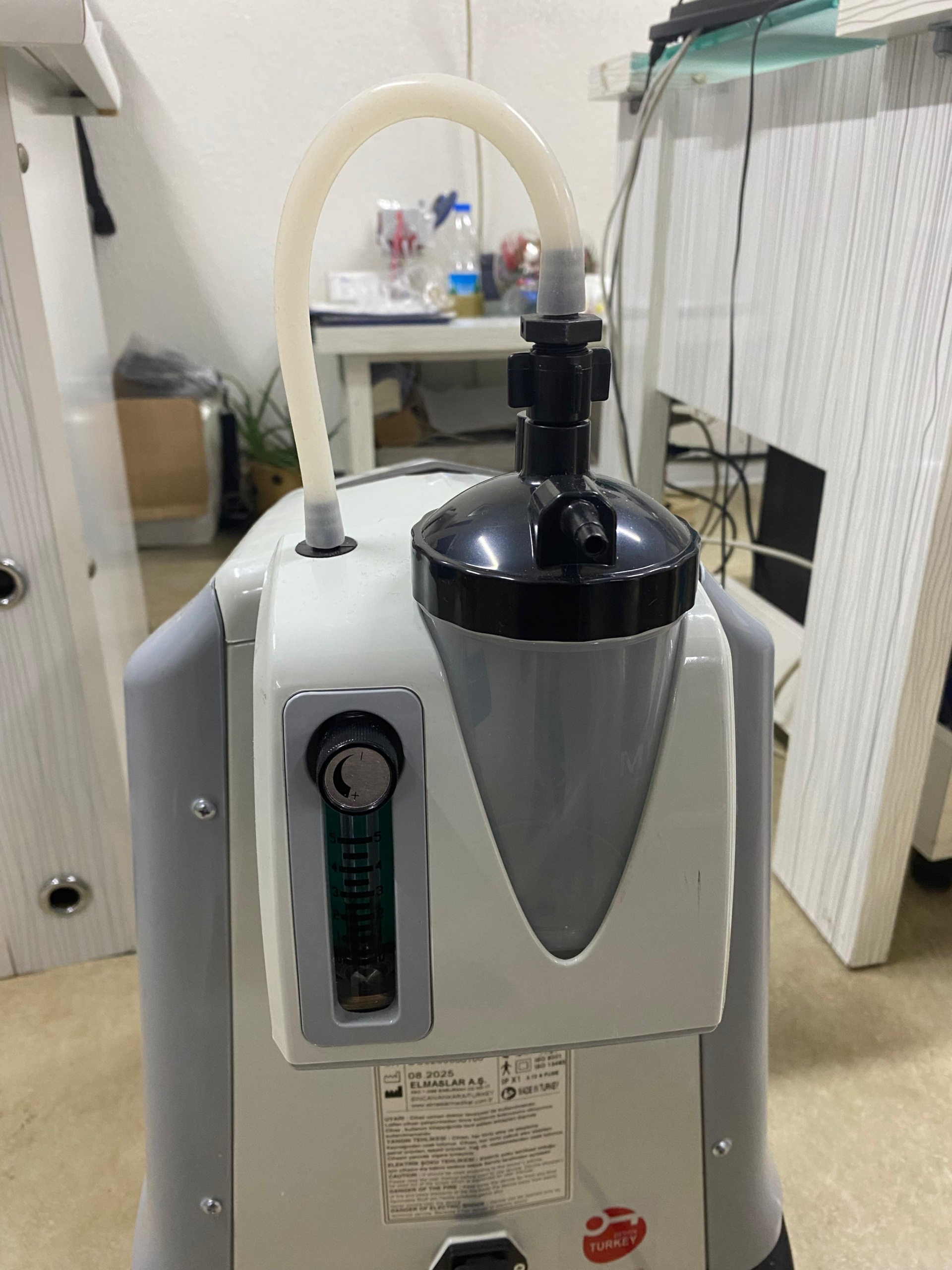 Since the device is visually very clean and newly manufactured (2025), the risk of mechanical fatigue or potential malfunction is quite low. The absence of a power cable in the visuals is the only deficiency. The short connecting hose between the humidifier bottle and the device appears sturdy; this is a part that often deforms, but it looks healthy in the visual. Overall, its condition is reassuring.