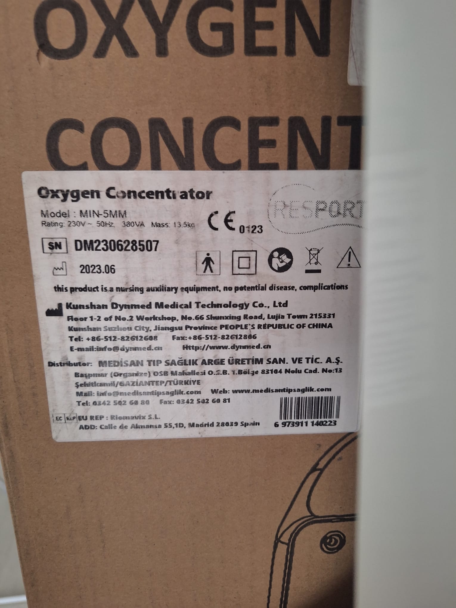 The labels on the device, the prints on the box, CE certification marks, and the exact match of the serial numbers (DM230628507) on both the box and the device indicate that the product is original. According to the factory data on the label, the device’s manufacturing year is 2023, and the manufacturing month is June.