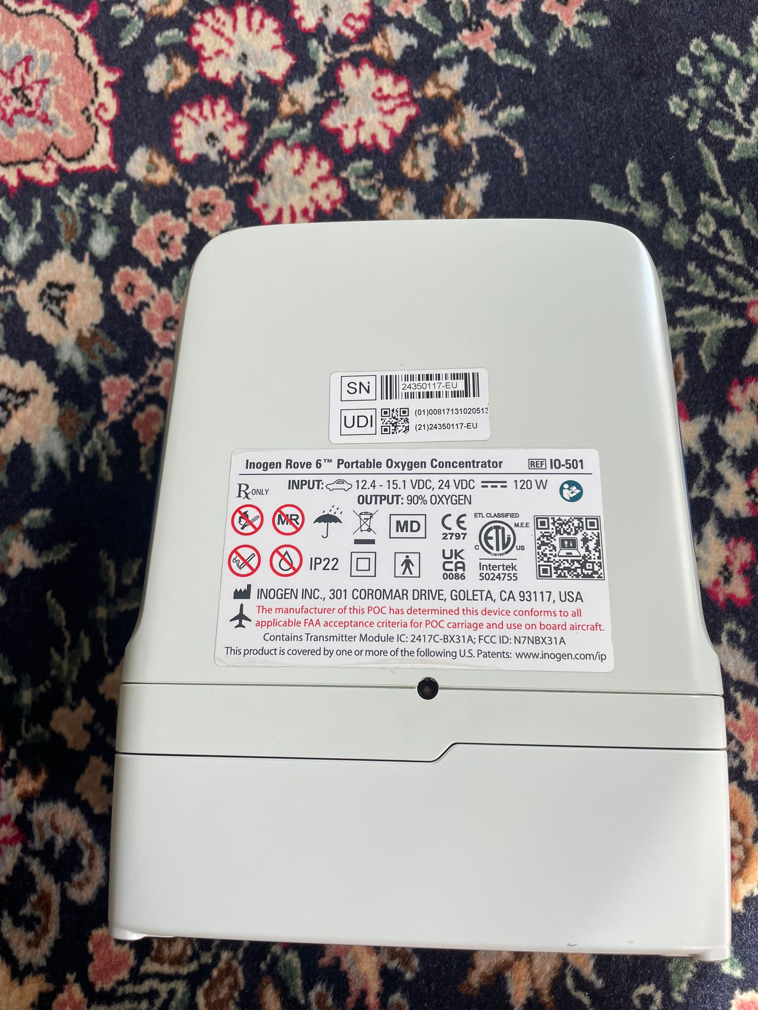 - Device Model Name: Inogen Rove 6™ Portable Oxygen Concentrator