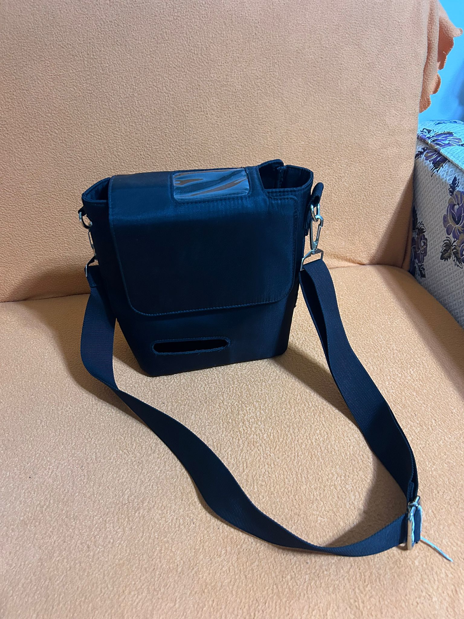 - 1 unit of black, shoulder-strapped carrying bag