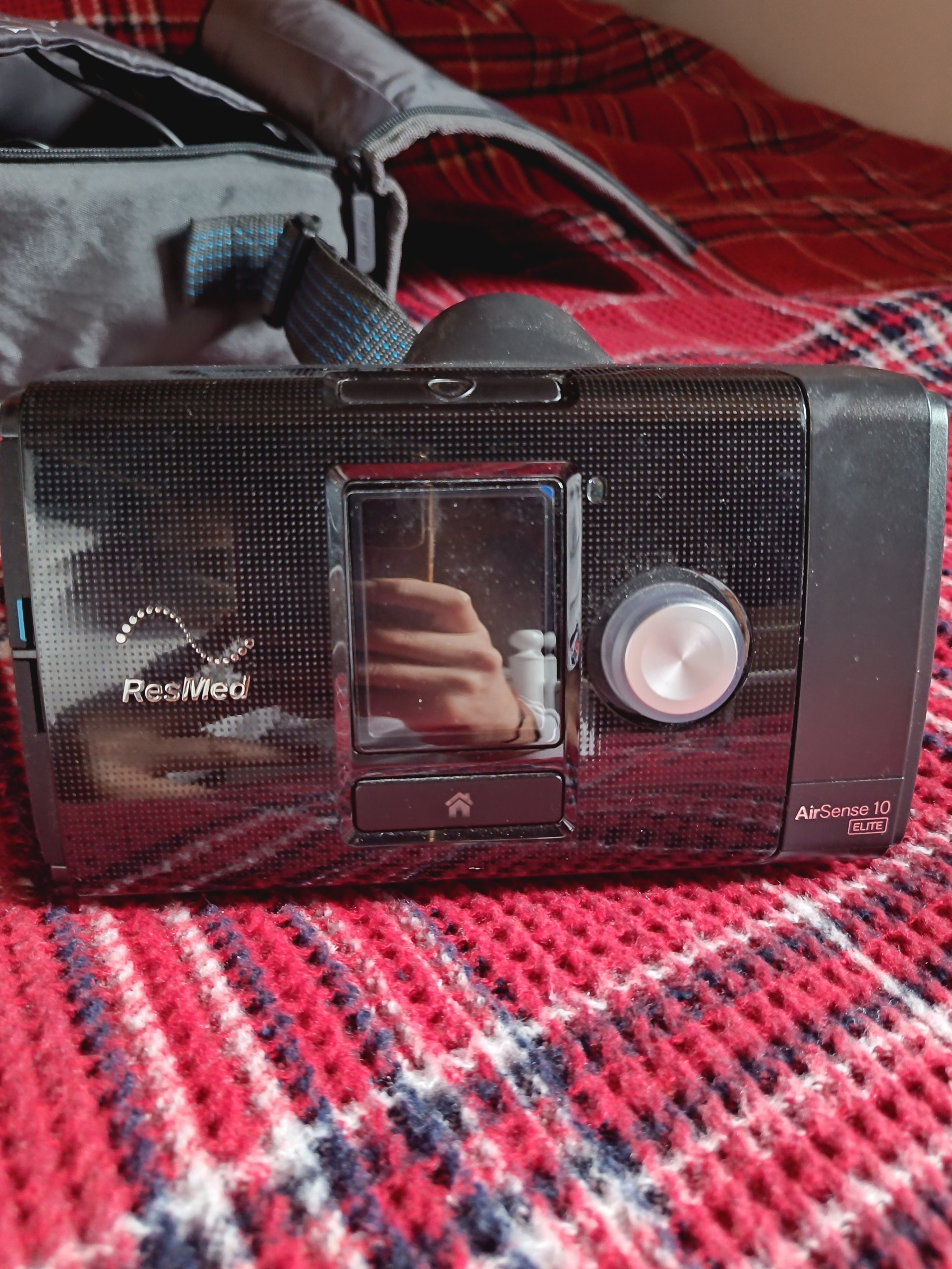 - Model: According to the clearly legible text on the bottom right corner of the device’s front panel, the model has been identified as AirSense 10 ELITE.