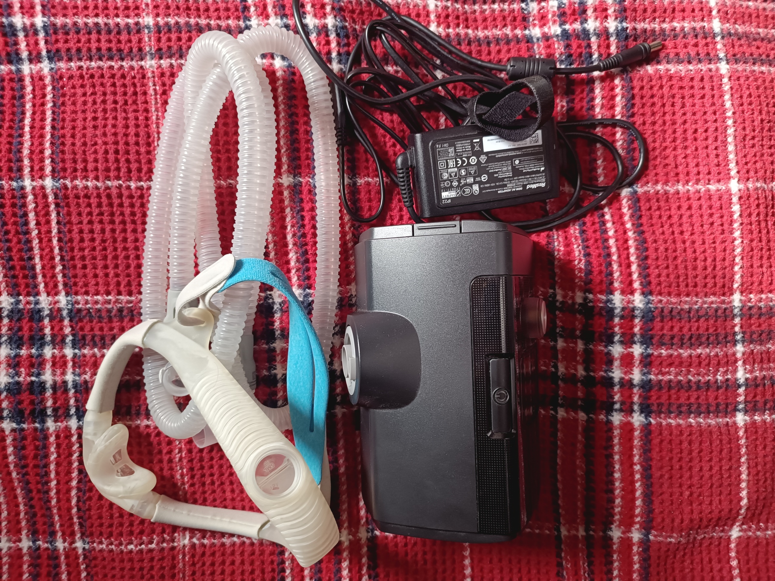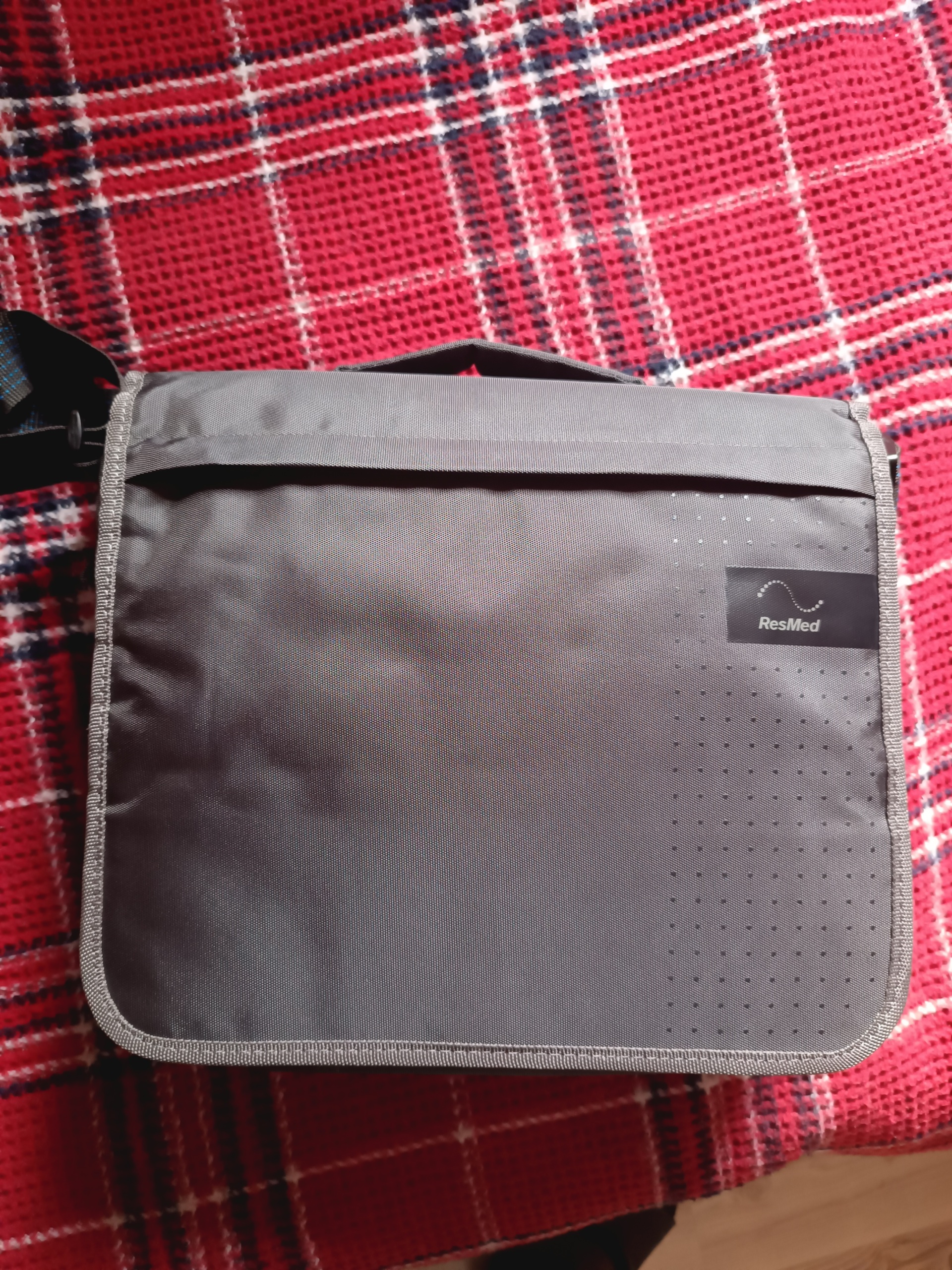 - Bag: The gray-colored, original ResMed logo bag appears sturdy. No tears are visible in the zipper stitching or the fabric.