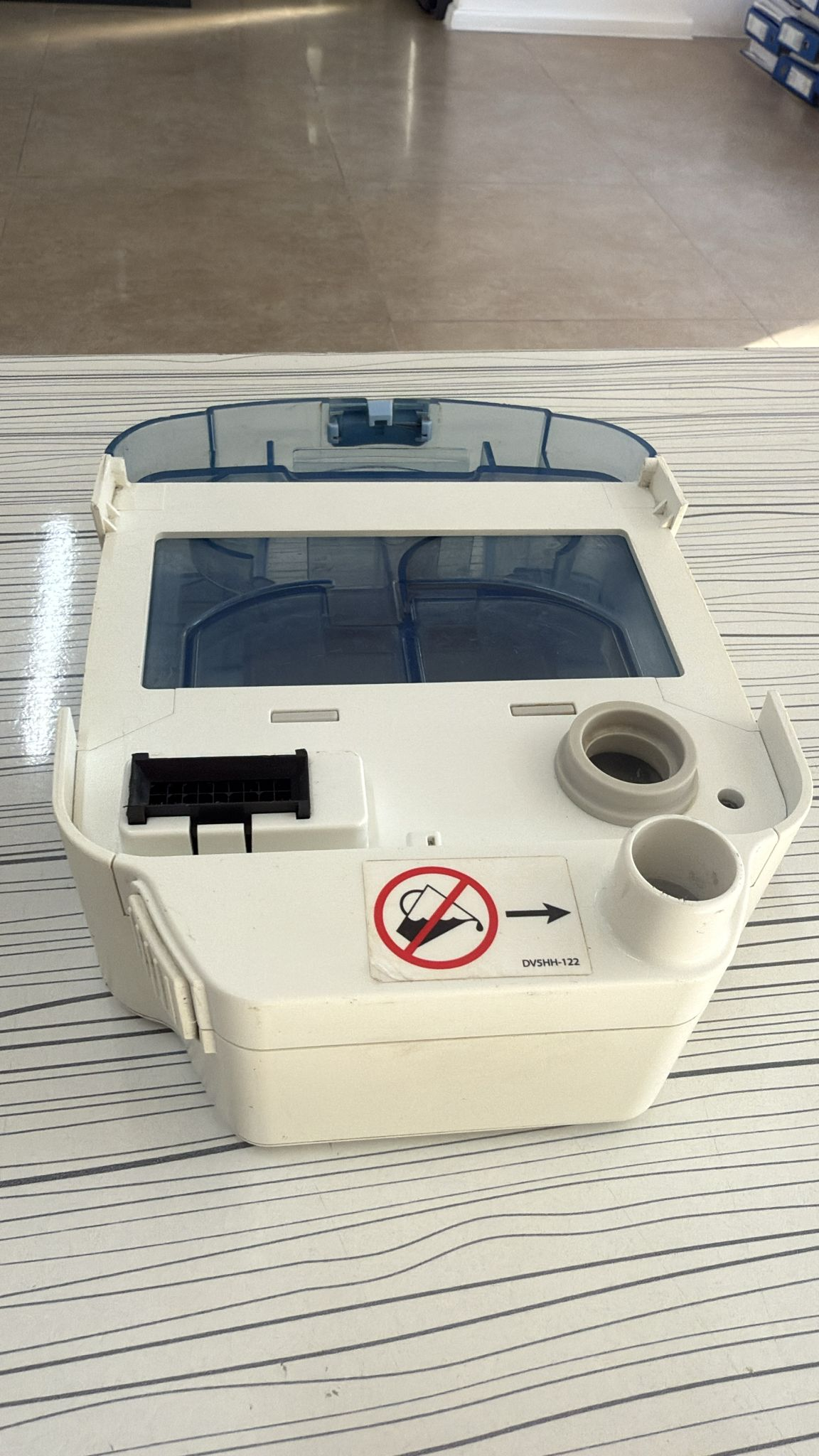 The product is generally in a used condition. No significant cracks, fractures, or dents were observed on its plastic casing. However, slight yellowing due to use and minor scratches are present in places on the surface. The blue water chamber retains its transparent structure, and no sediment or stains are visible inside. The overall cleanliness of the product is good, but it may require detailed hygienic cleaning.