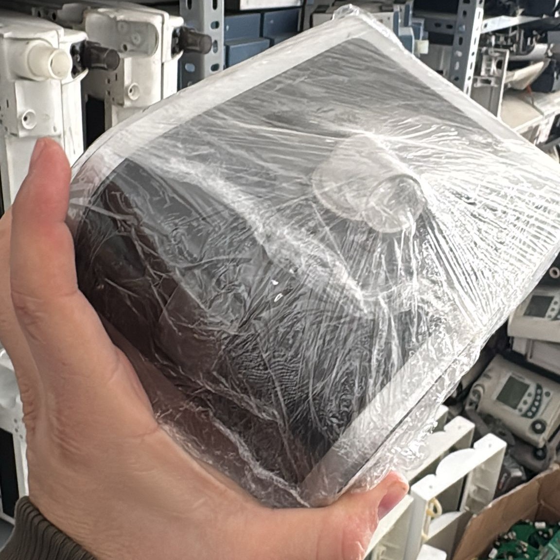The product is wrapped with multi-layered stretch film to protect it against external factors (dust, moisture, scratches). This type of packaging suggests that the product might be a spare part awaiting shelving, a device returning from service, or a unit being prepared for shipment. Due to the integrity of the packaging, minor scratches or cosmetic flaws (if any) on the device’s surface cannot be identified through the visual inspection. However, it can be stated that the structural integrity of the part is maintained in general, and no major damage such as crushing or breakage is visible.