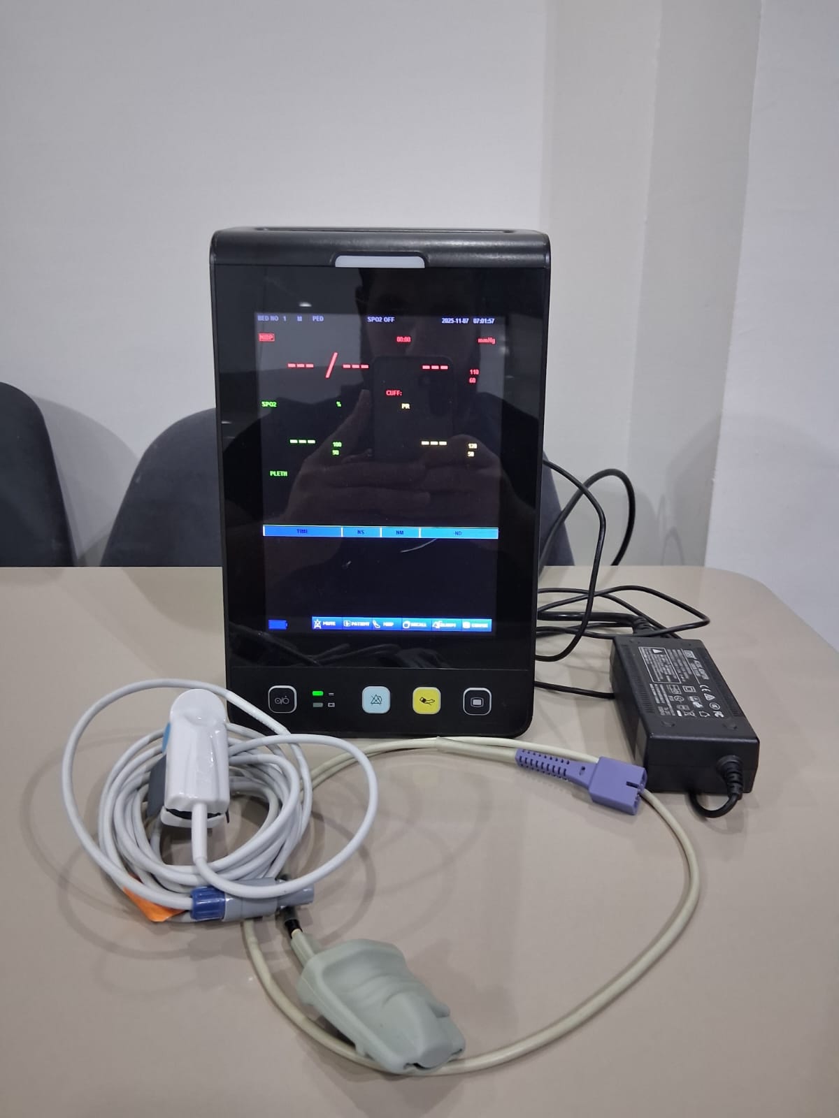 - Accessories: The SpO2 probe, NIBP cuff, and cables are generally in good condition. No significant wear or damage is visible on the cables.