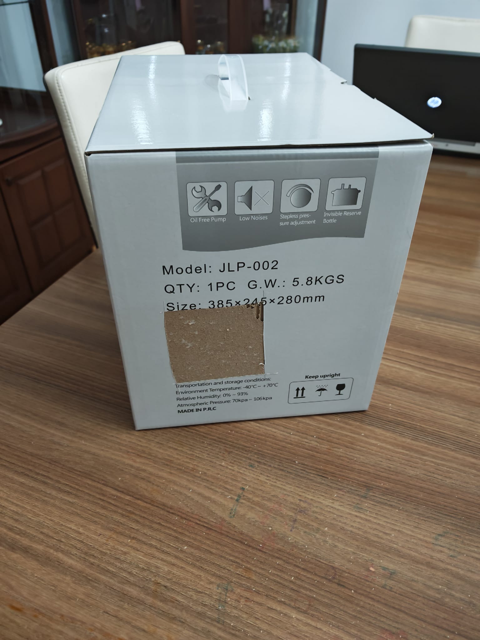 The “Size: 385x245x280mm” inscription on the box provides the package dimensions. The product’s gross weight is 5.8 kg. It falls into the portable class.