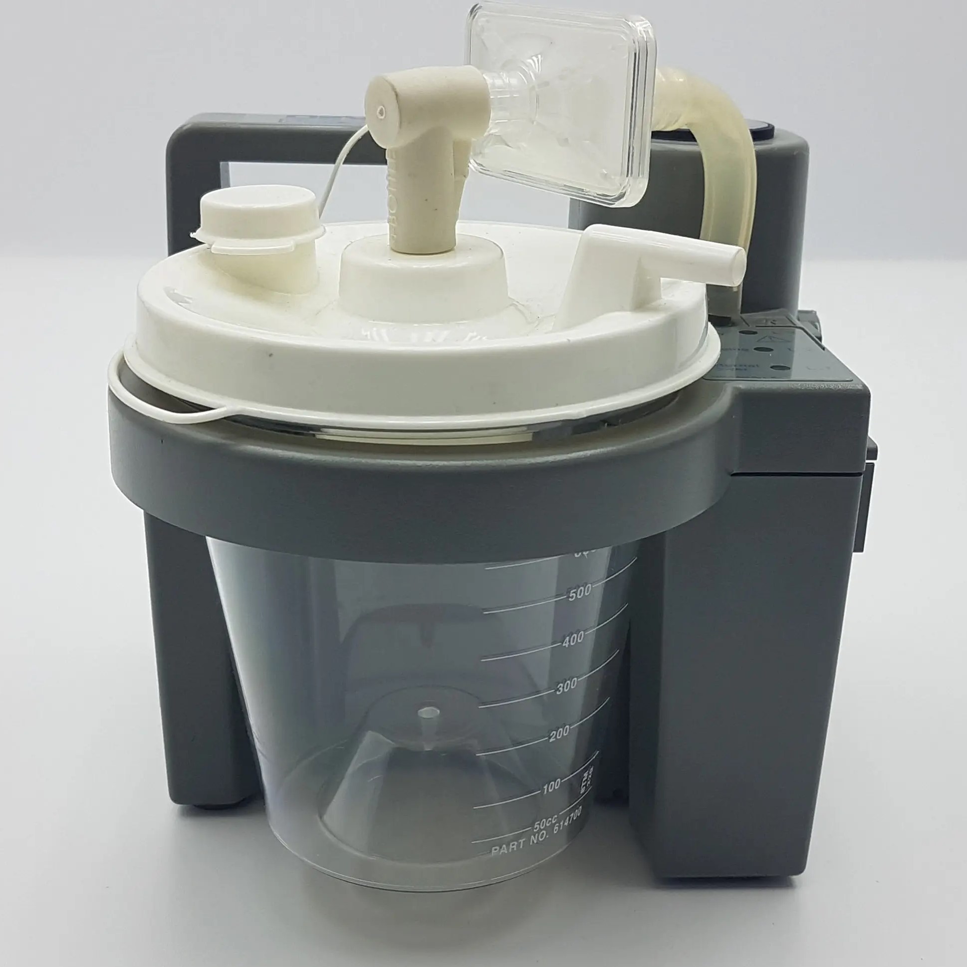 The plastic molding workmanship and industrial design of the device are in accordance with professional medical device standards. The “PART NO. 614700” and “50cc – 500cc” prints on the jar are of original production standard and clearly legible.