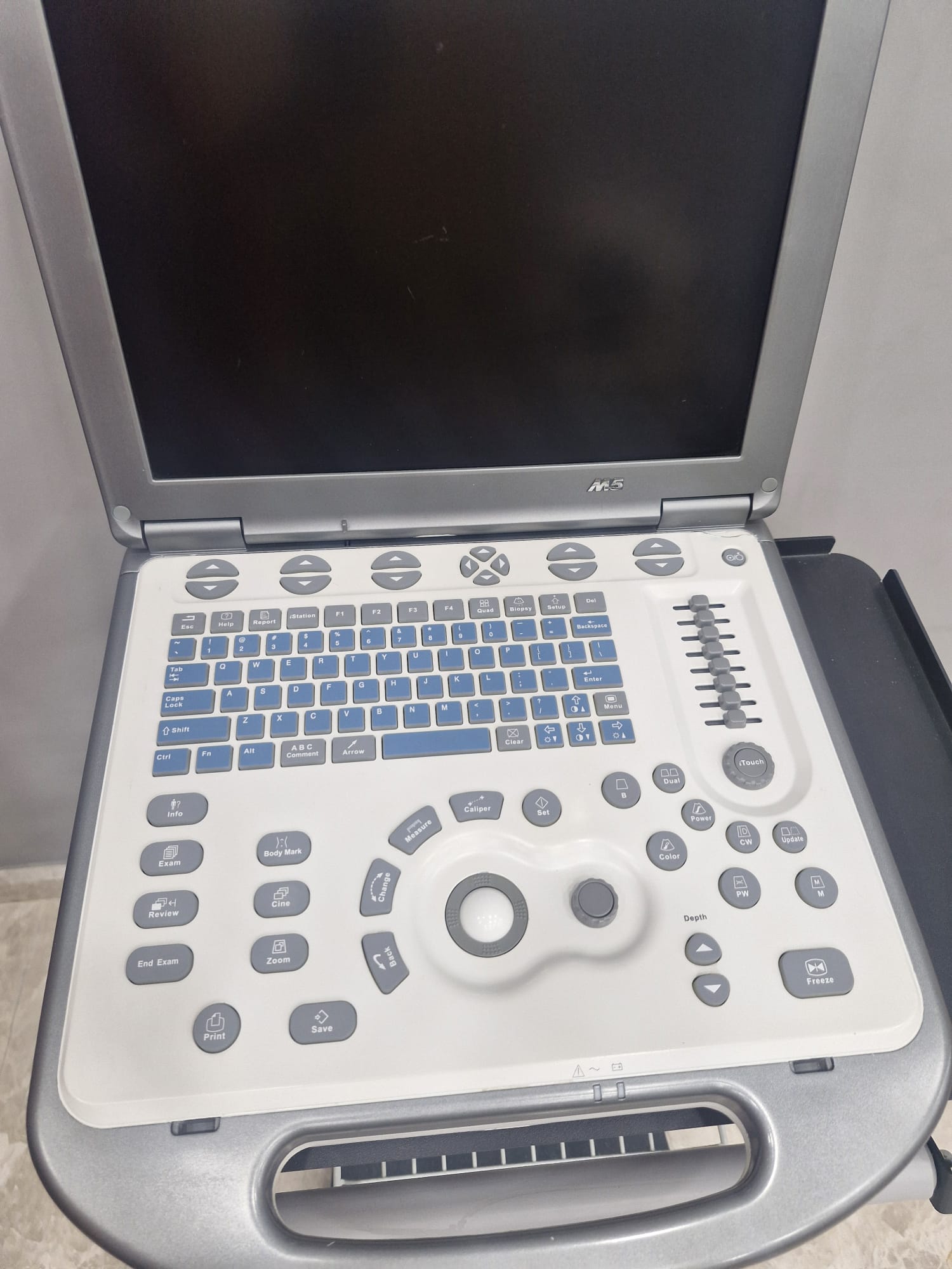 This report has analyzed a Mindray M5 model portable ultrasound device and its two accompanying probes (7L4s and 3C5s). The product is seen as a complete set, including a trolley. It is a medical imaging system that is cosmetically sound, has an unworn keypad, and complete parts.