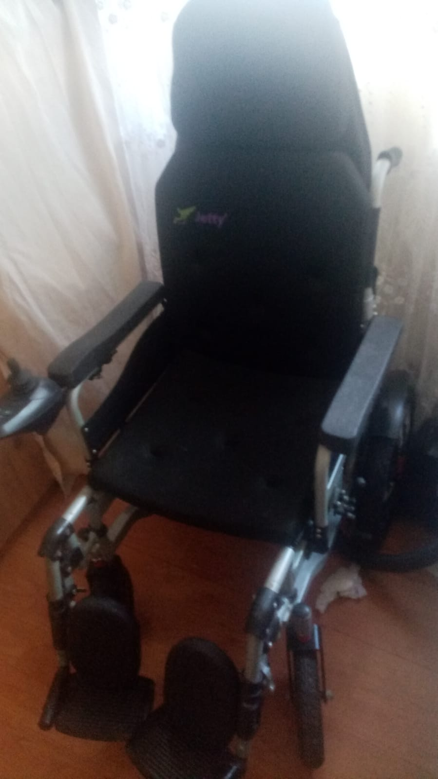 The product shown in the images is a Jetty branded electric wheelchair. The logo and text on the backrest and seat portion of the device confirm the brand as Jetty. The product is a mobility aid designed for individuals with limited mobility. A total of 1 electric wheelchair is present in the images. Considering the product’s overall structure, logo placement, and workmanship quality, it is evaluated as original.