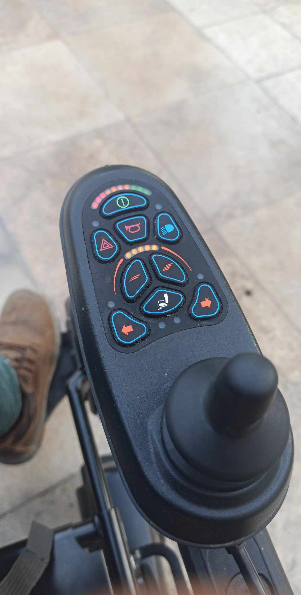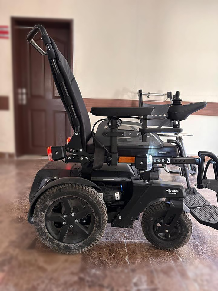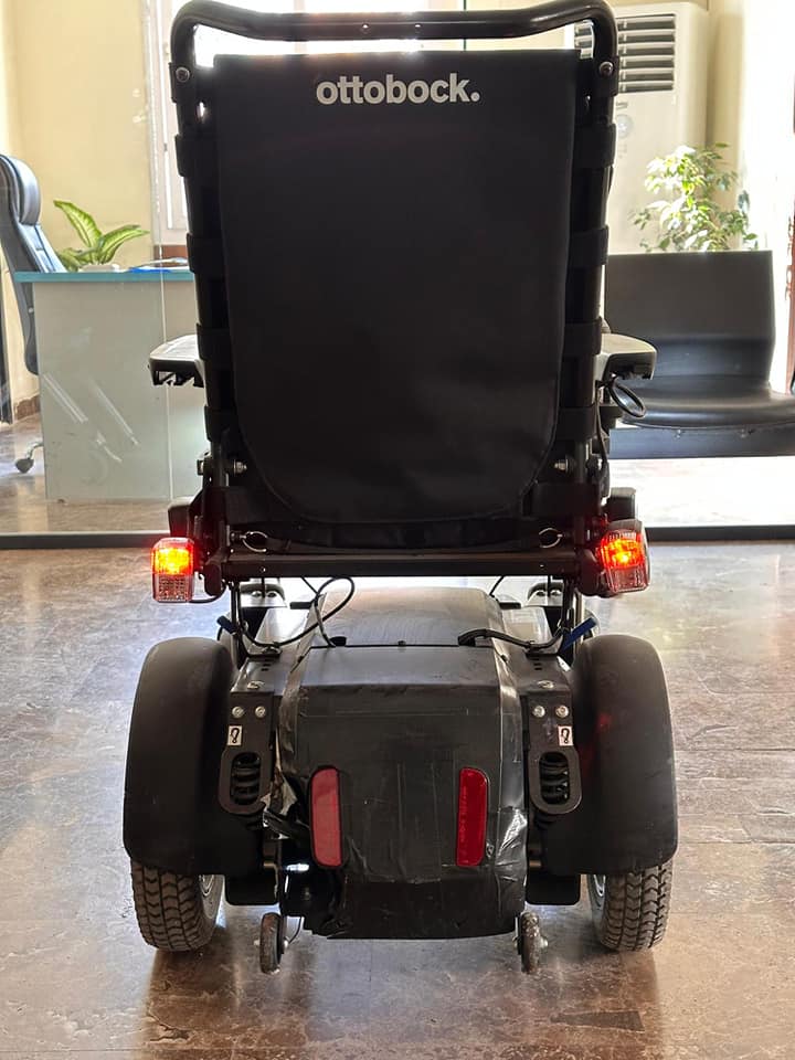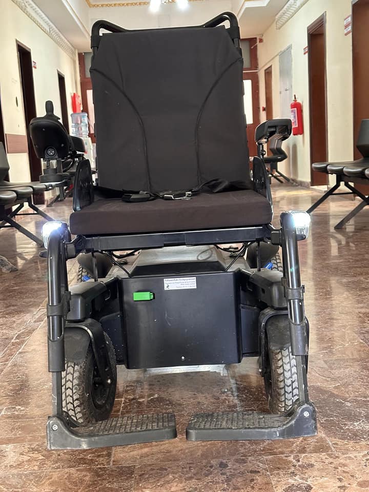 The general condition of the product is assessed as used. Dirt and dust residues on the wheels indicate that the product has been used previously. However, the main chassis, seat, and electronic components of the wheelchair do not show any signs of major damage. The lighting system being operational suggests that the device’s basic functions are active.