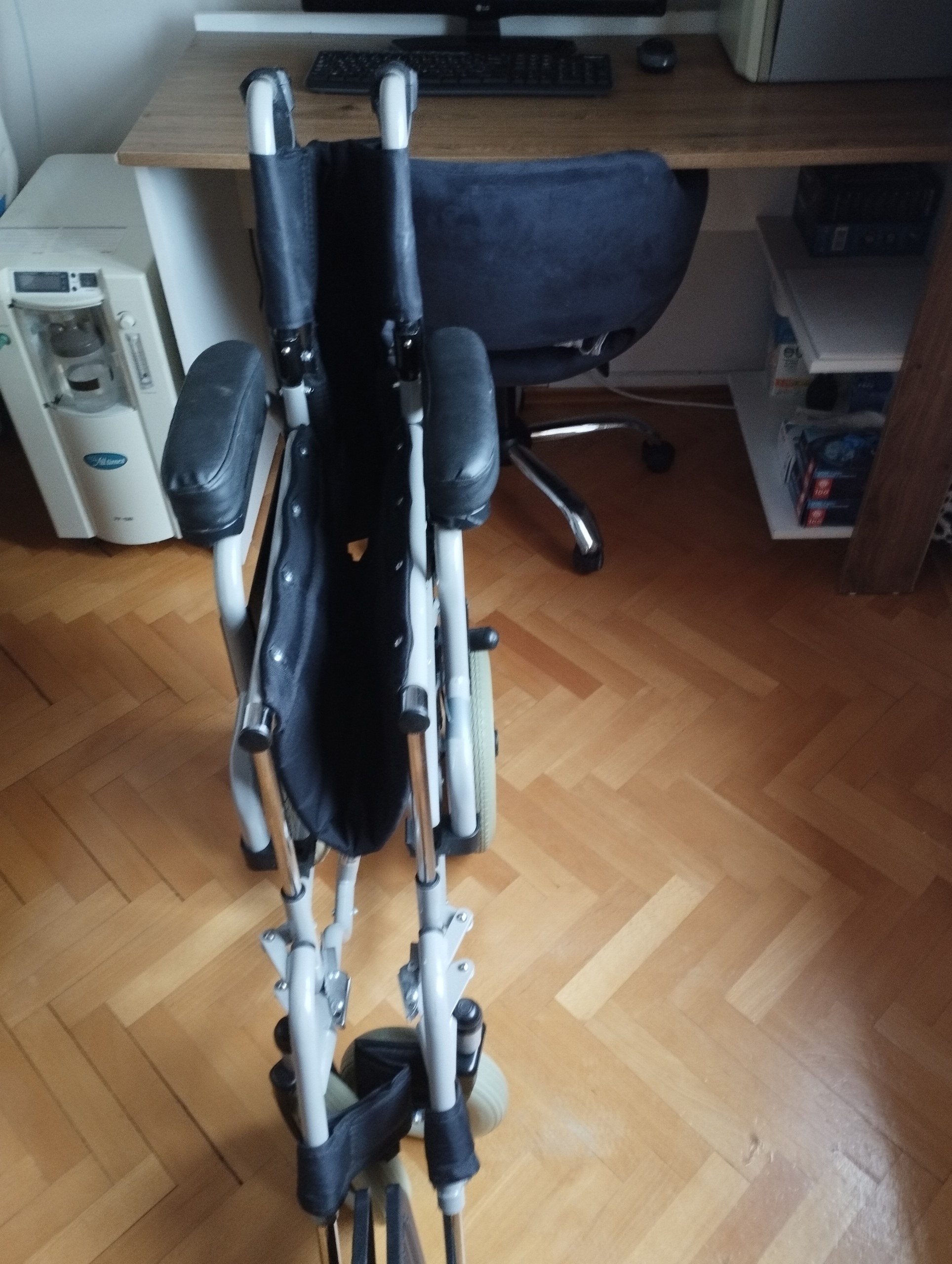 The visuals do not show any broken, cracked, or detached parts requiring immediate intervention. The chassis connection points and wheel connections appear sturdy. Apart from signs of wear that may occur over time on the armrest foam/covering due to its second-hand nature, no mechanical risk is apparent. Its condition is ready for immediate use.