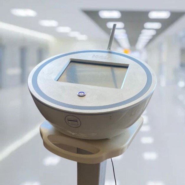 Mekanik Aksam: Cihazın üzerinde bulunan ve mavi ışıkla aydınlatılmış düğme fiziksel olarak sağlam görünmektedir. Probun kendisi ve kablosu da herhangi bir kopukluk veya yıpranma belirtisi göstermemektedir. Cihazın üzerine monte edildiği tekerlekli stant, fonksiyonel bir durumda görünmektedir.
