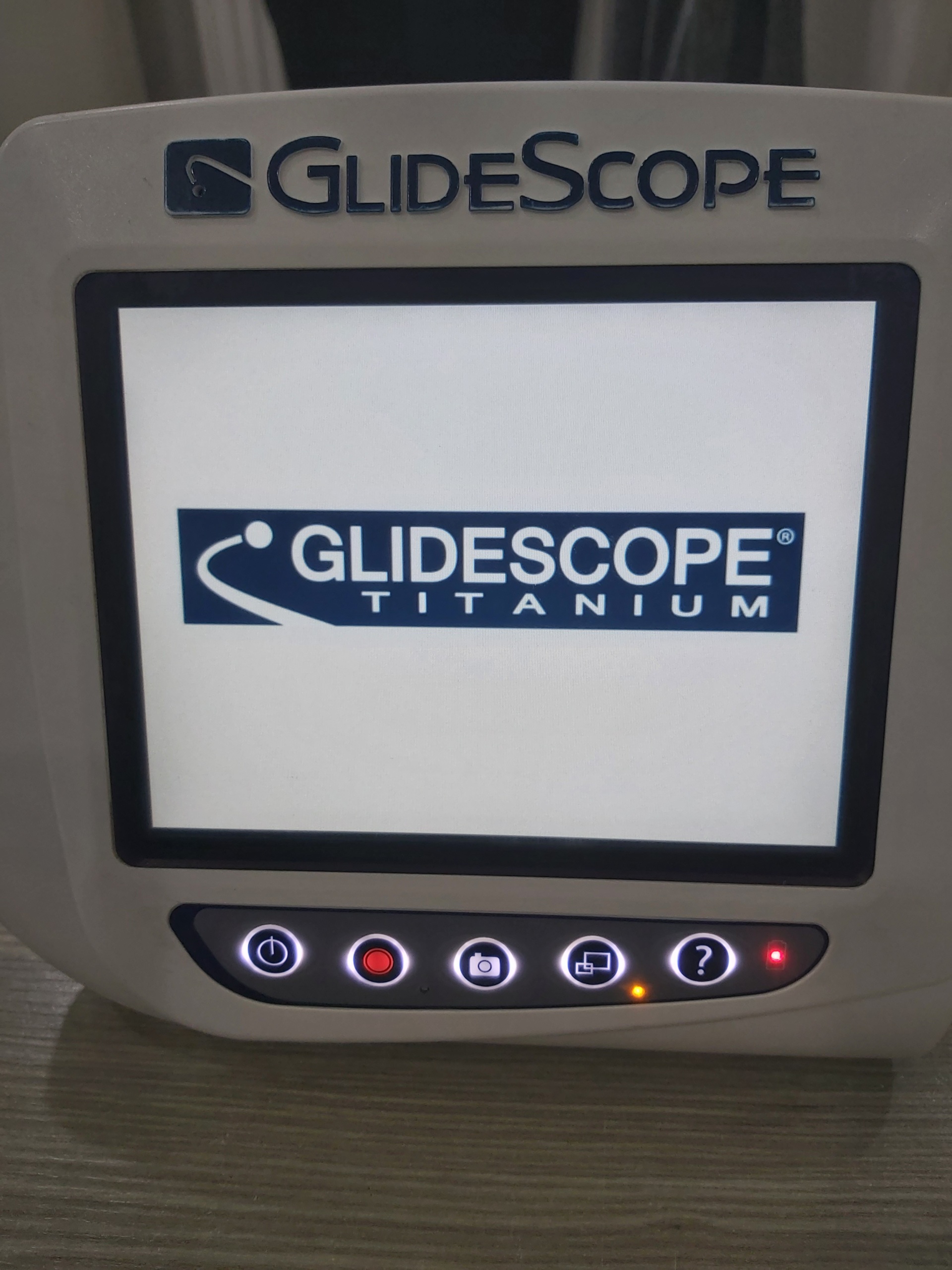 Görsellerde yer alan cihaz, tıbbi görüntüleme amacıyla kullanılan bir video monitördür. Cihazın üzerinde ve açılış ekranında net bir şekilde görülen GlideScope markasına ait olduğu tespit edilmiştir. Açılış ekranında belirtilen GlideScope Titanium ifadesi, ürünün modelini veya serisini göstermektedir. Ürünün logo kalitesi, üzerindeki teknik etiketler ve genel işçilik detayları, cihazın orijinal olduğunu düşündürmektedir. Bu monitör, video laringoskop sistemlerinin bir parçası olarak, genellikle entübasyon (soluk borusuna tüp yerleştirme) işlemi sırasında hava yolunun görüntülenmesi için kullanılır.
