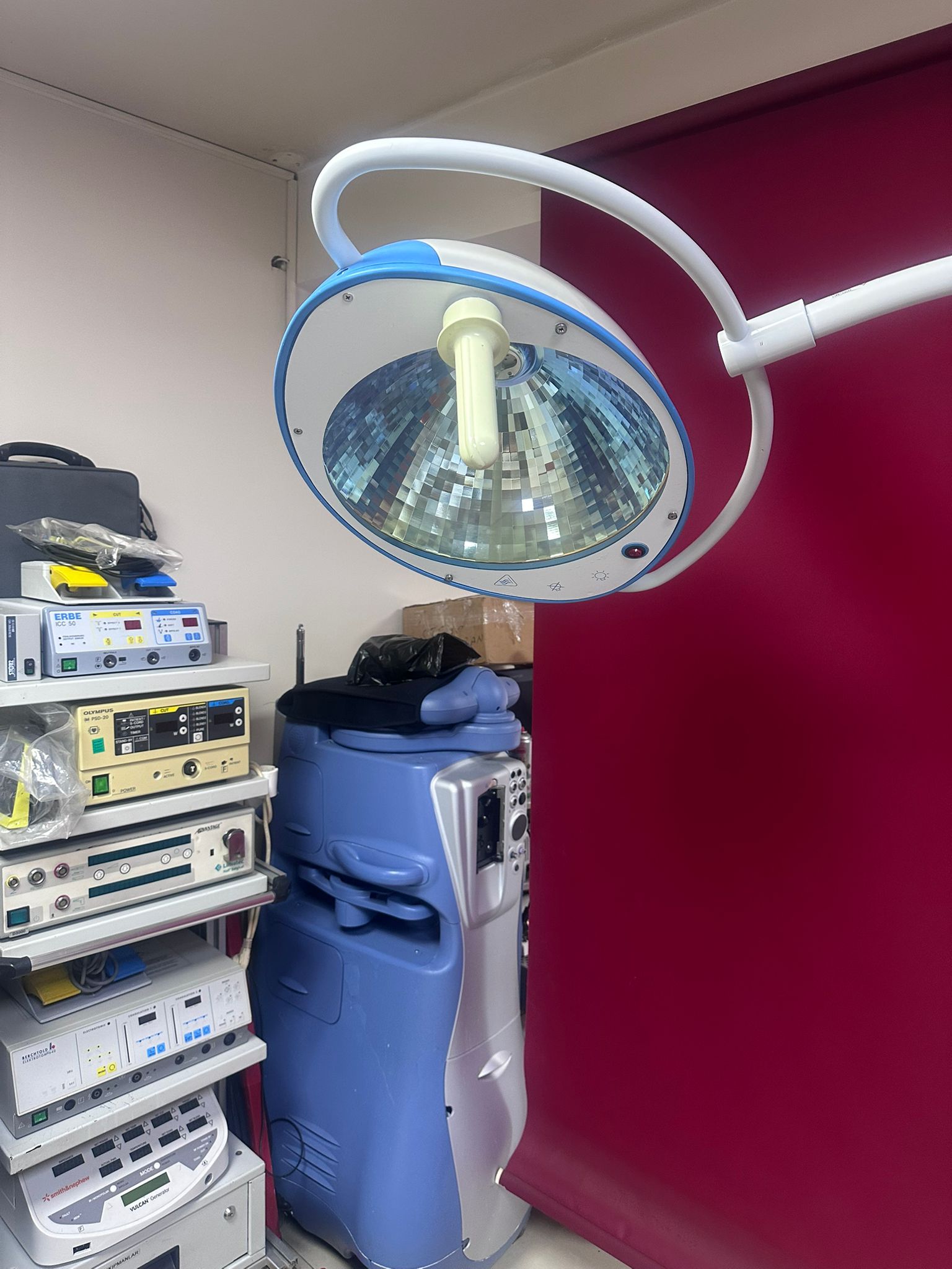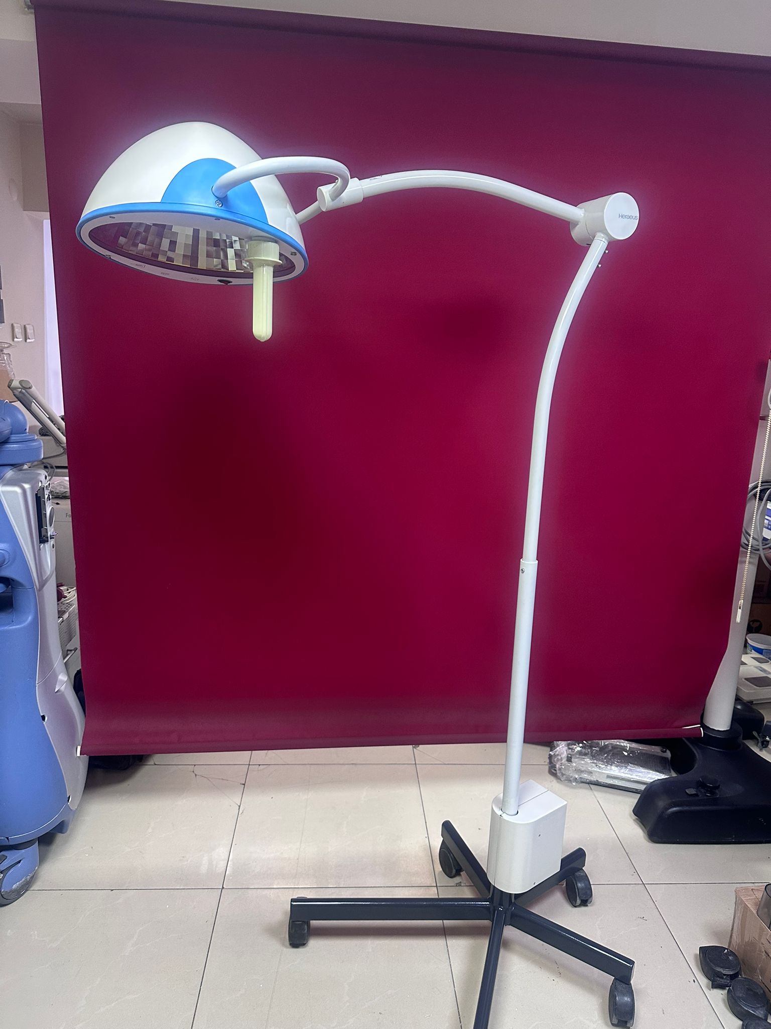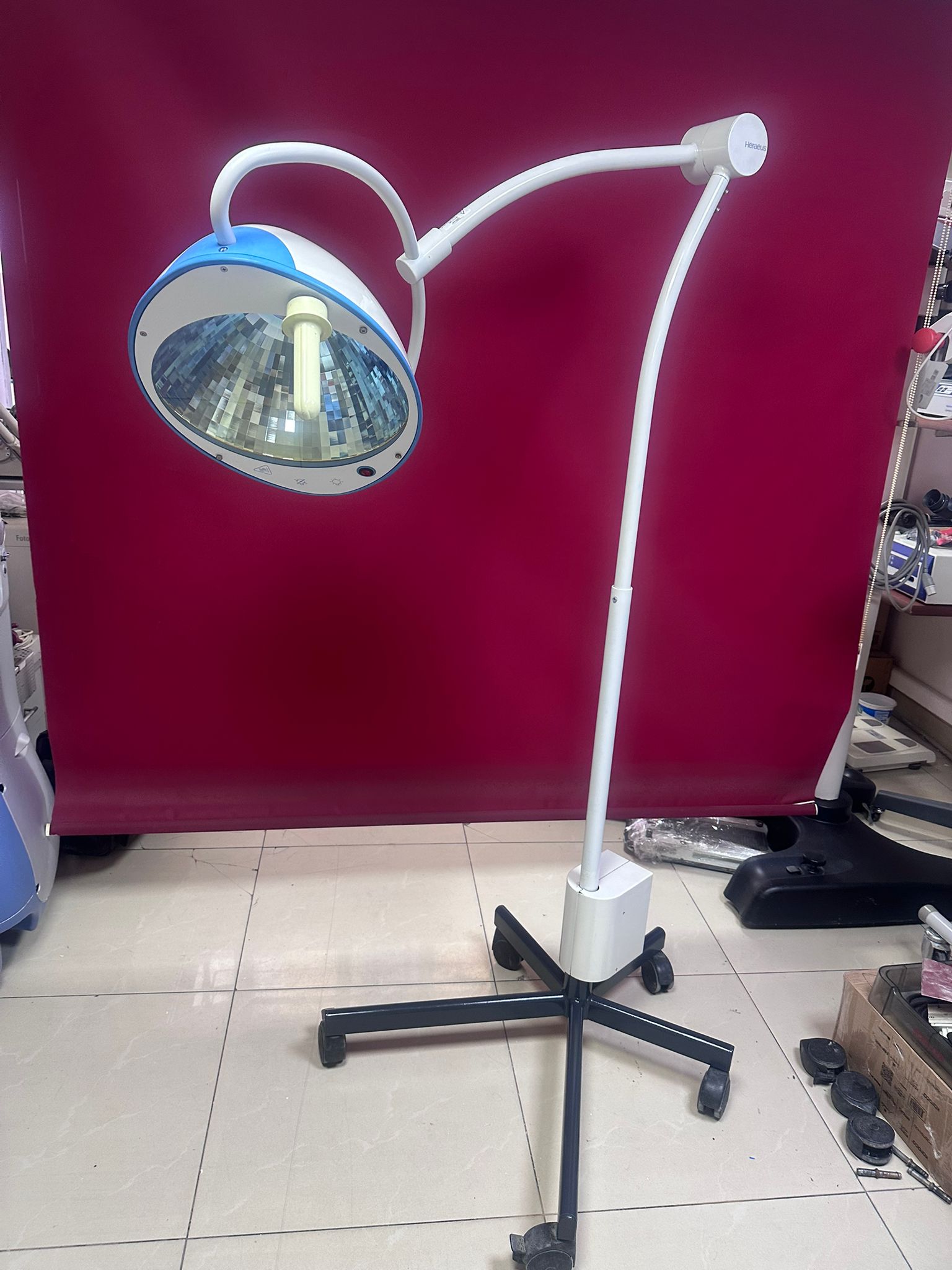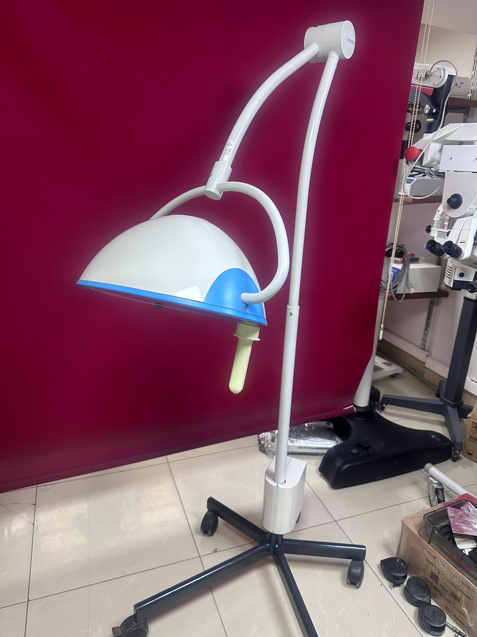 Görsellerde 1 adet seyyar Hanaulux ameliyat/muayene lambası bulunmaktadır. (Arka plandaki diğer cihazlar rapora dahil edilmemiştir).