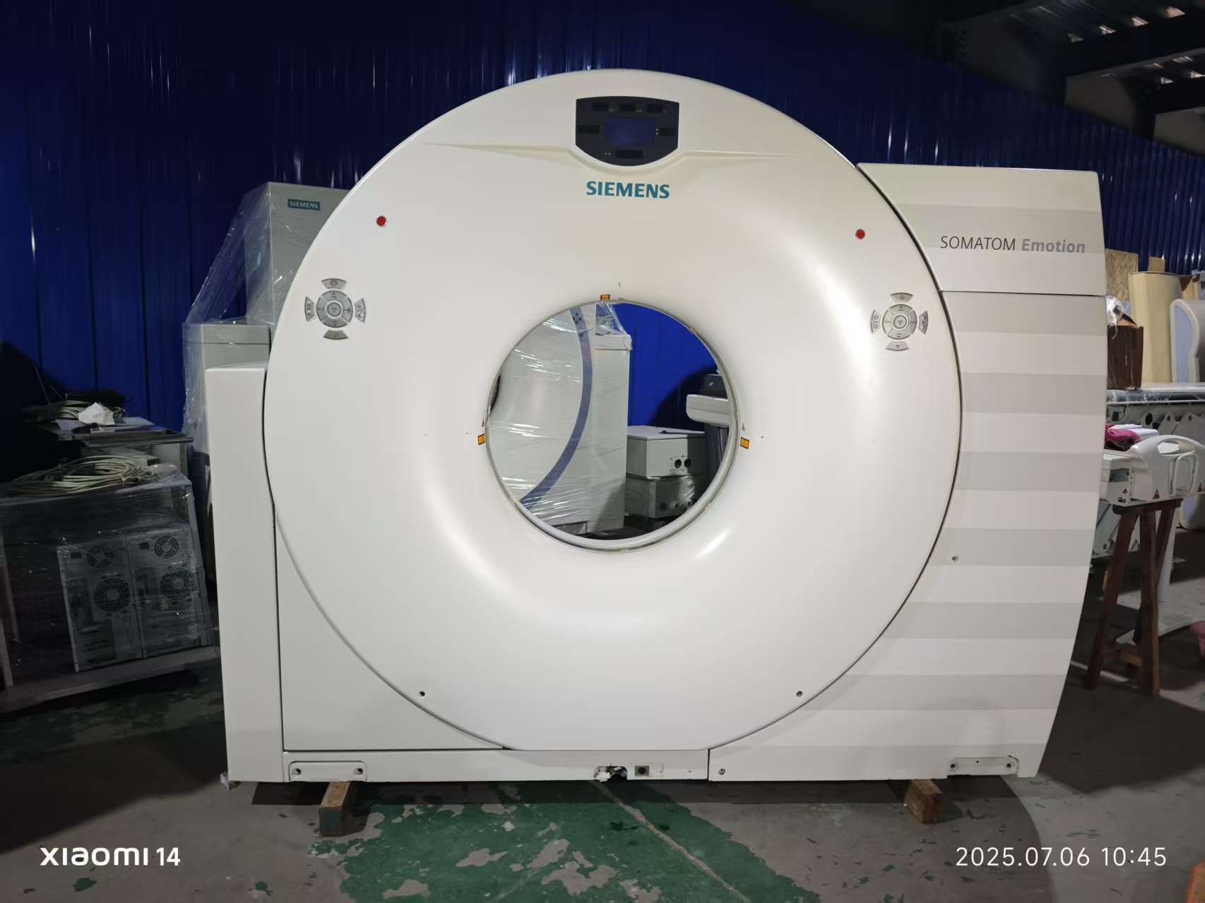 Görsel kanıtlara dayanarak, Siemens Somatom Emotion model bilgisayarlı tomografi cihazının fiziksel olarak çok iyi durumda olduğu söylenebilir. Üzerinde herhangi bir kırık, çatlak veya ciddi bir yıpranma belirtisi bulunmamaktadır. Bu durum, cihazın düzenli bakım görmüş olabileceğini ve dikkatli kullanıldığını düşündürmektedir. Görsel olarak tespit edilen herhangi bir bariz arıza kanıtı veya potansiyel arıza riski yaratabilecek ciddi bir yıpranma (paslanma, kablolarda ezilme vb.) mevcut değildir. Ancak, cihazın operasyonel durumu ve işlevselliği hakkında net bir yorum yapabilmek için teknik bir denetim ve test sürecinden geçmesi gerekmektedir.