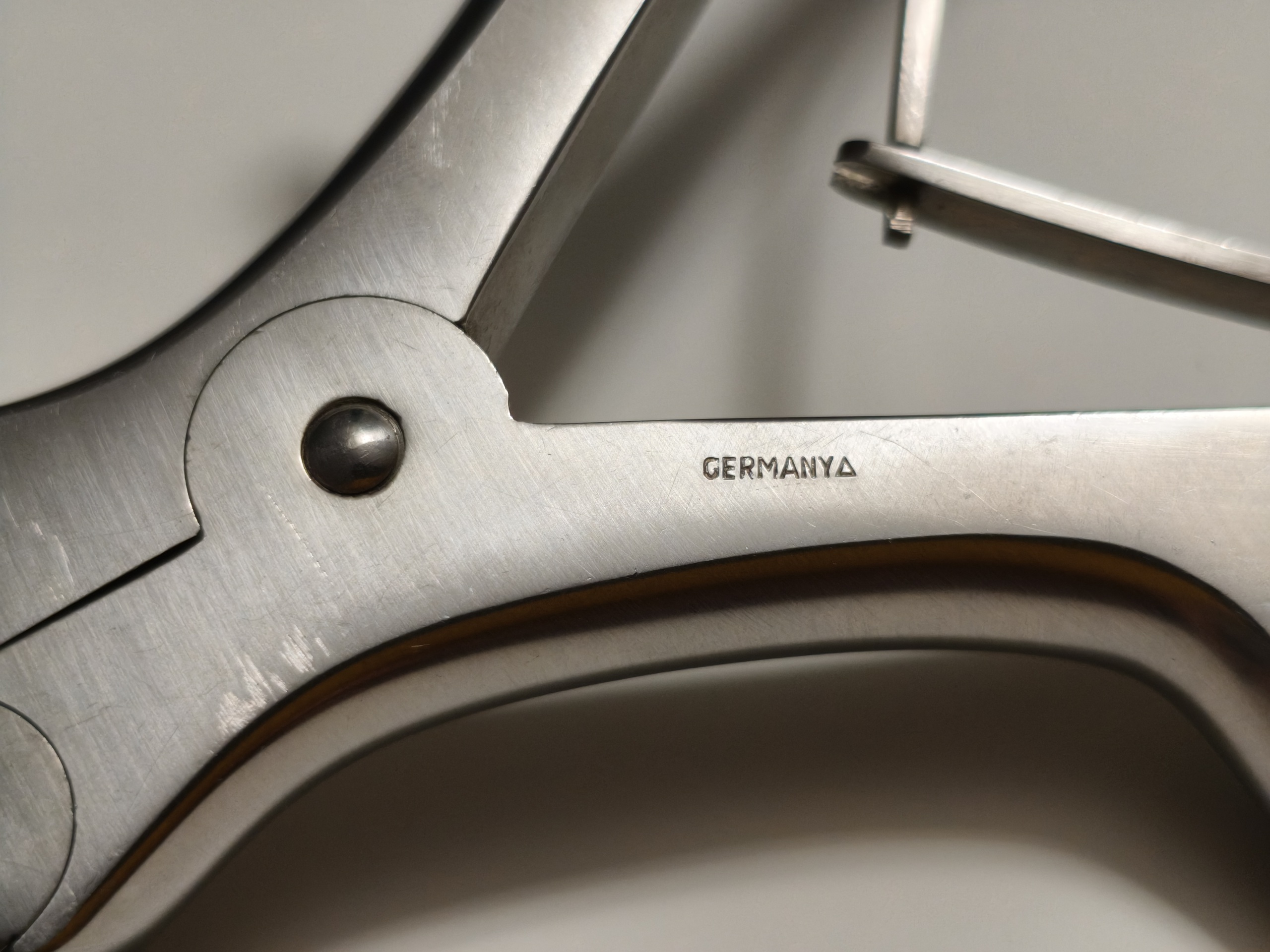 Aletin üzerinde yapılan detaylı incelemede, metal üzerine kazınmış tek bir yazı bulunmaktadır. Bu yazı “GERMANYA” olarak okunmaktadır. Bunun dışında ürüne ait herhangi bir seri numarası, lot numarası, REF kodu veya başka bir teknik bilgi içeren etiket ya da yazı bulunmamaktadır.
