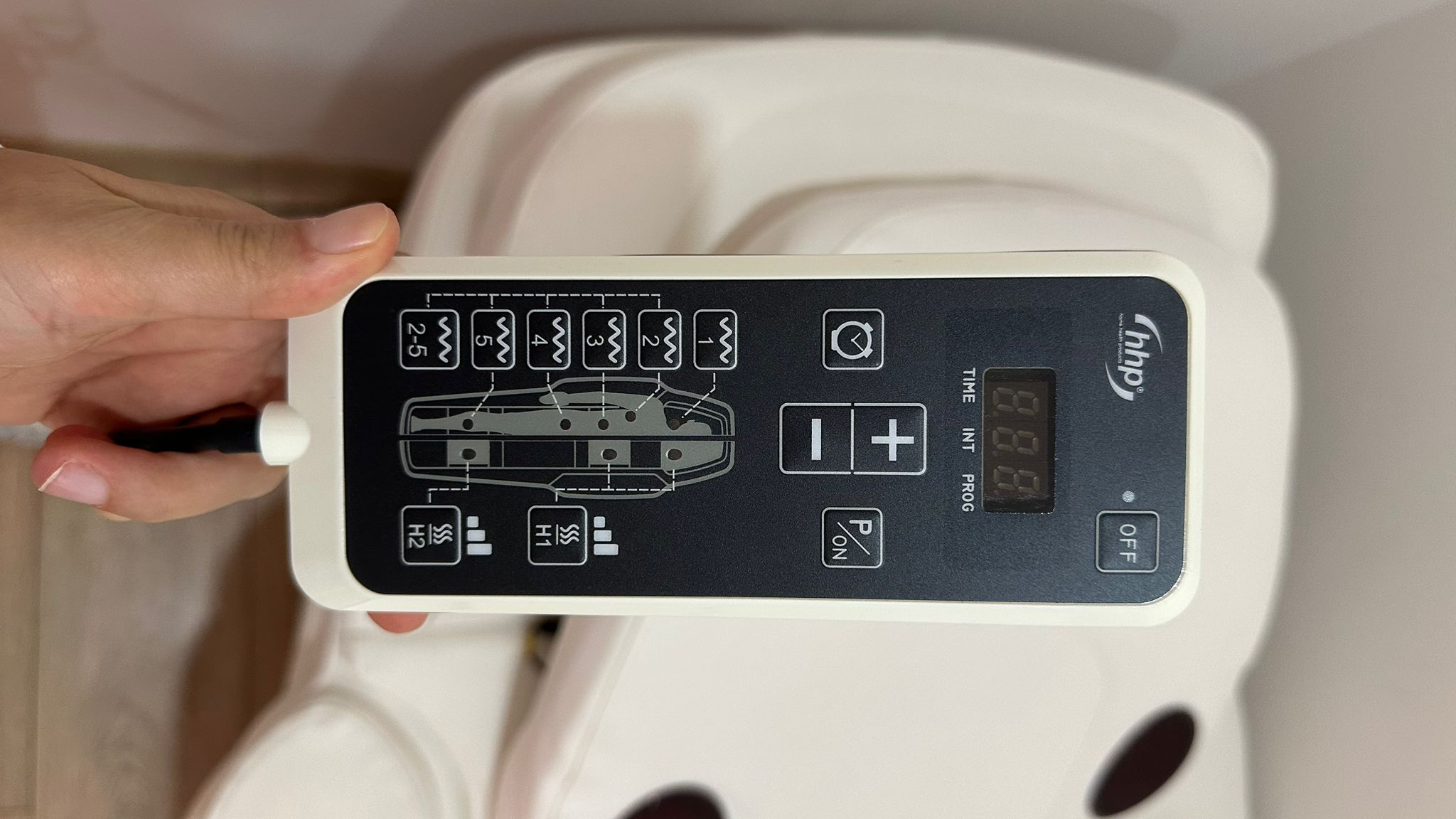- Fonksiyonlar: Kumanda üzerindeki ikonlar, vücudun farklı bölgelerine yönelik titreşim/masaj programlarının olduğunu göstermektedir. Ayrıca H1 ve H2 olarak belirtilen ısıtma fonksiyonlarının varlığı anlaşılmaktadır.