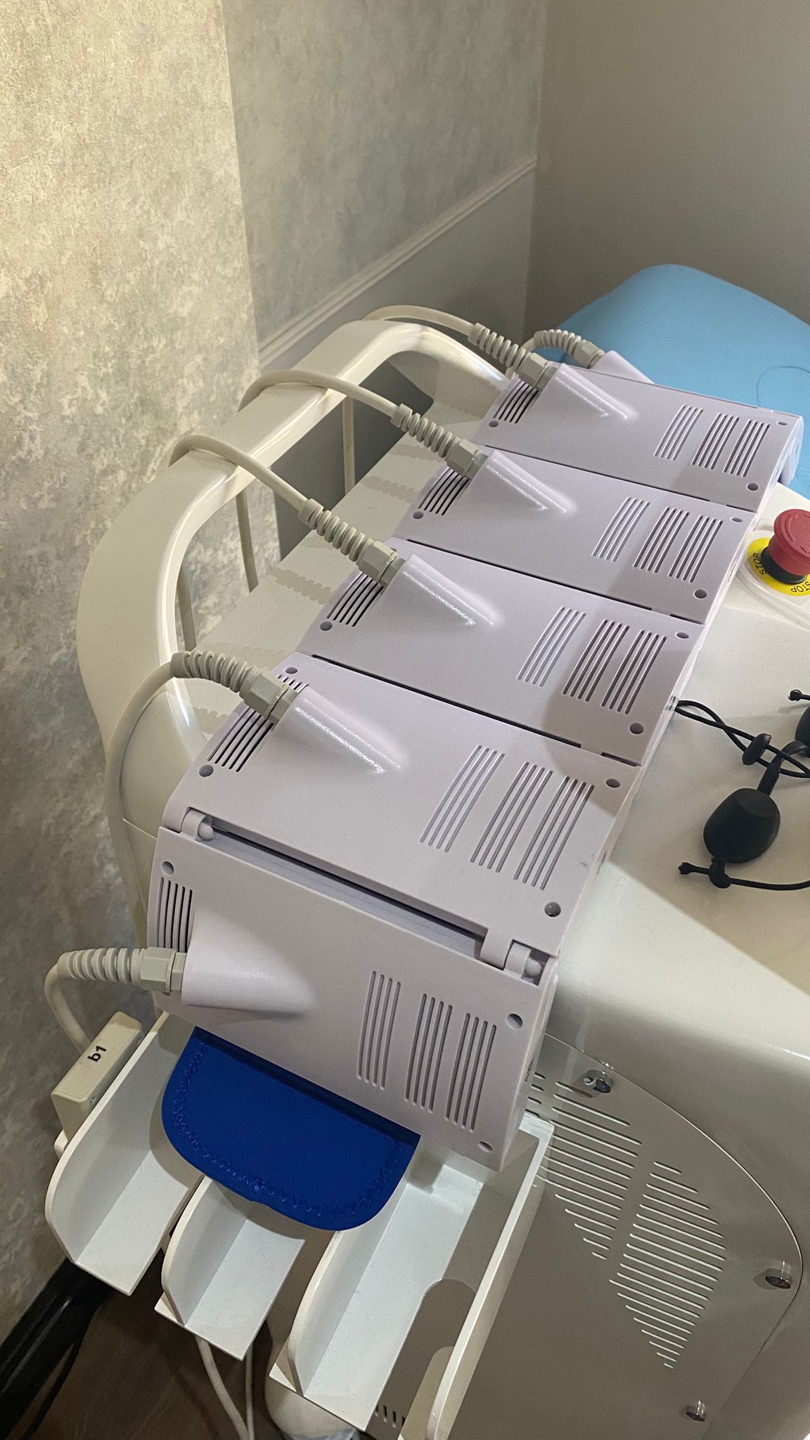 Görsellerde yer alan cihaz, profesyonel kullanım için tasarlanmış bir vücut şekillendirme ve estetik bakım cihazıdır. Üzerindeki “HHP” ve “DETOXBODY” yazılarından ürünün markasının HHP, modelinin ise Detoxbody olduğu anlaşılmaktadır. Cihaz, tekerlekli ana bir ünite ve bu üniteye kablolarla bağlı çeşitli uygulama başlıklarından (aplikatörlerden) oluşmaktadır. Tekerlekli yapısı sayesinde kolayca taşınabilme özelliğine sahiptir.