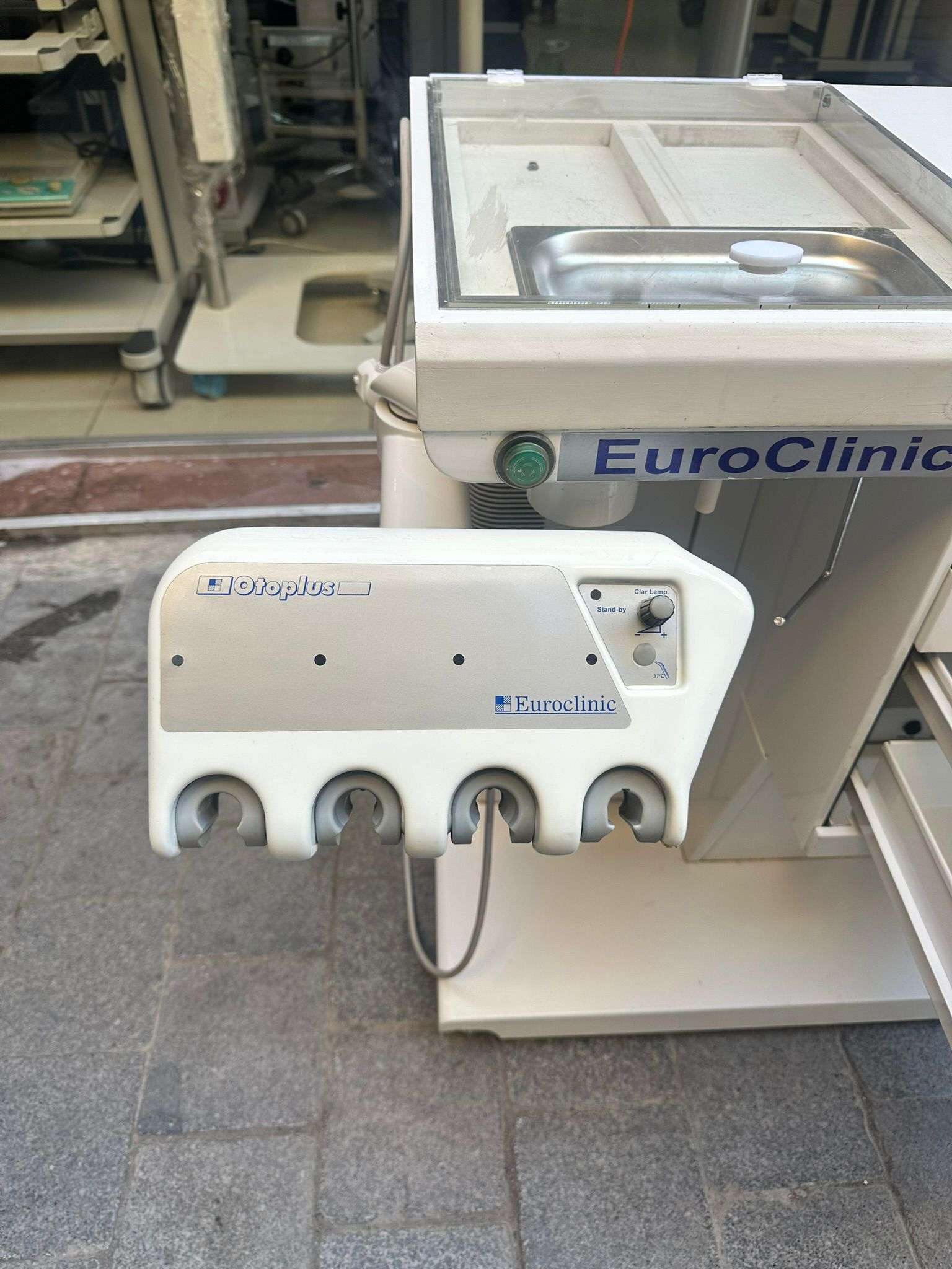 Yapılan detaylı görsel incelemede, ünitenin ana gövdesi ve alet konsolu üzerinde Euroclinic markasına ait logo ve yazı net bir şekilde görülmektedir. Alet konsolu üzerinde ayrıca Otoplus model ismi de bulunmaktadır. Bu bilgilere dayanarak ürünün markası Euroclinic, modeli ise Otoplus olarak kesin bir şekilde tespit edilmiştir.
