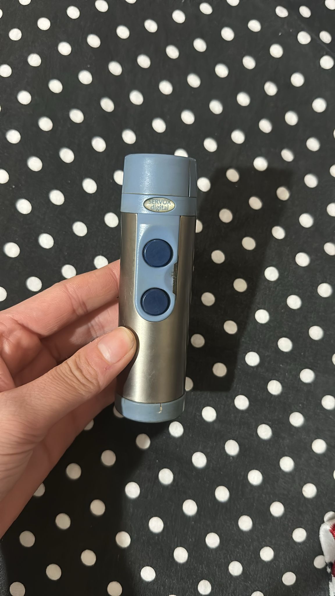 Görsellerde yer alan cihaz, bir Servox Digital markalı elektronik larenks, halk arasında bilinen adıyla gırtlak konuşma cihazıdır. Bu cihaz, gırtlağın alınması (larengoktemi) ameliyatı geçirmiş, trakeotomi uygulanmış veya çeşitli nedenlerle sesini kaybetmiş bireylerin konuşabilmesine yardımcı olan medikal bir alettir. Cihaz, boyun bölgesine temas ettirilerek oluşturduğu titreşimler aracılığıyla kullanıcının ses çıkarmasını ve konuşmasını sağlar.