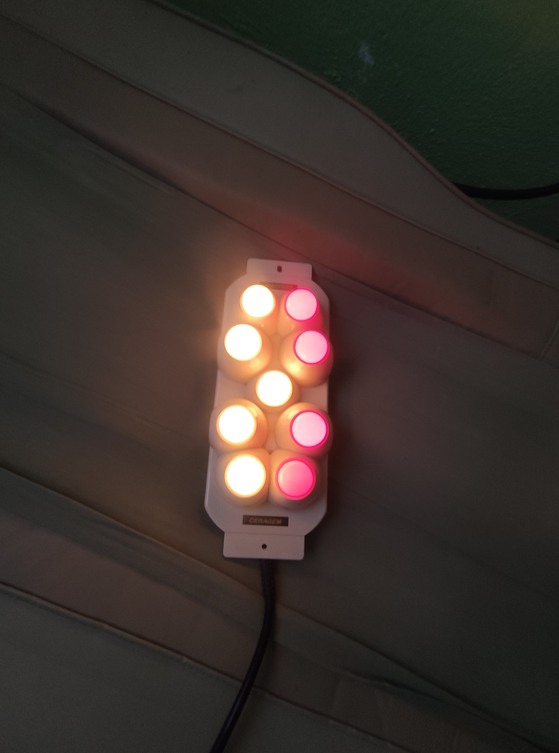 - Projektörler: Görsellerdeki 3’lü ve 9’lu olmak üzere iki adet harici projektörün de ışıkları yanmaktadır. Bu, projektörlerin çalıştığını ve yatağa doğru şekilde bağlı olduğunu göstermektedir.
