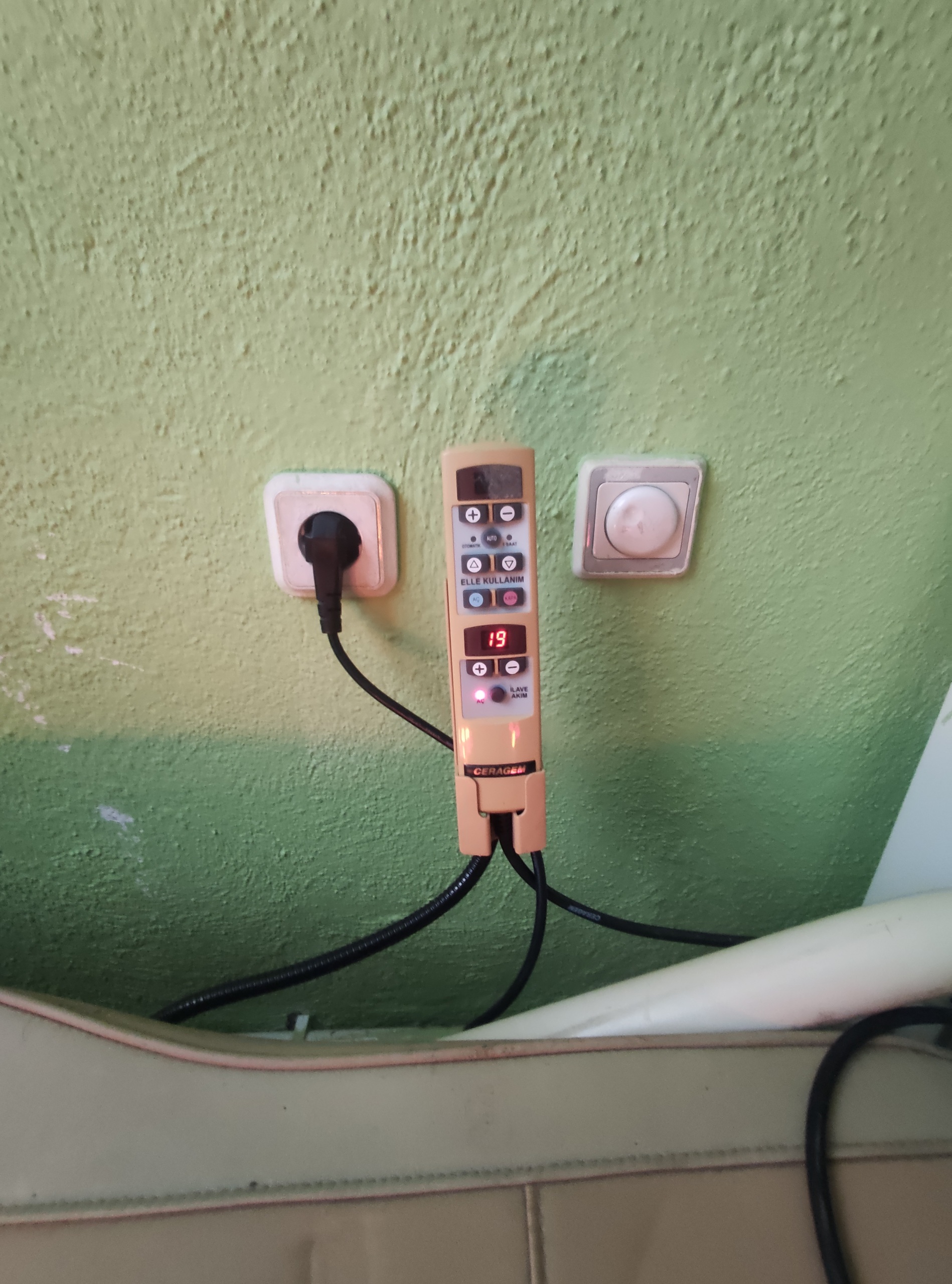 Kumanda ve projektörleri yatağa bağlayan kabloların yanı sıra cihaza güç veren ana elektrik kablosu da görsellerde mevcuttur. Kabloların dış yüzeyinde herhangi bir ezilme, kopma veya yıpranma gözlemlenmemiştir.