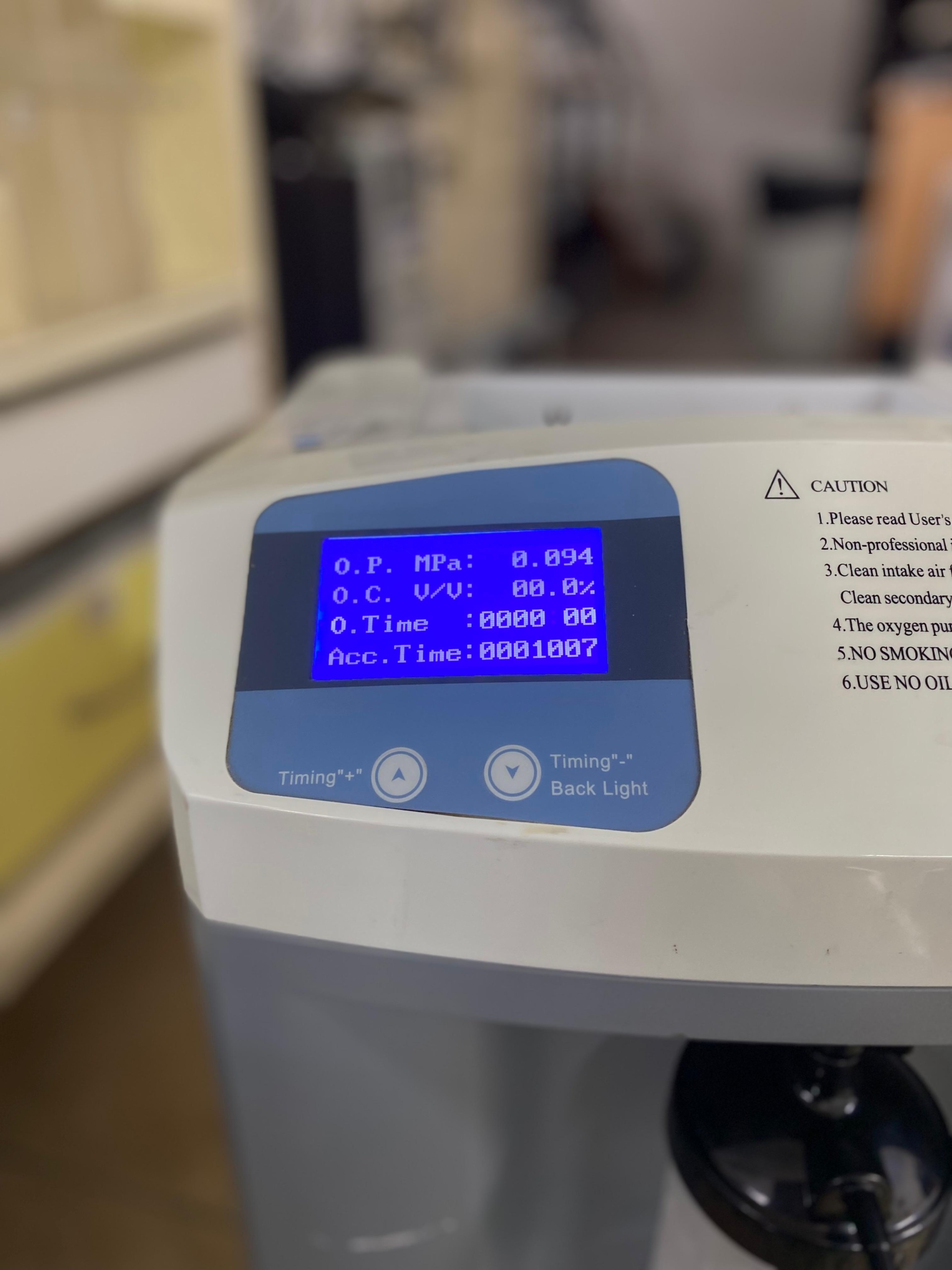 Cihazın fiziksel bütünlüğünde çalışmasını engelleyecek majör bir hasar gözlemlenmemiştir. Cihazın güç aldığı ve ekranının çalıştığı teyit edilmiştir. Ancak, cihaz çalışır durumda olmasına rağmen ekrandaki oksijen konsantrasyonu (O.C. V/V) değerinin %00.0 olarak görünmesi dikkat çekicidir. Bu durum cihazın henüz yeni açılmış ve oksijen üretimine tam başlamamış olmasından kaynaklanabileceği gibi, cihazın oksijen üretim kapasitesinde bir soruna da işaret edebilir. Cihazın 1007 saatlik kullanım geçmişi göz önüne alındığında, uyarı metninde belirtilen 100 ve 300 saatlik filtre temizlik/değişim bakımlarının yapılmış olması cihazın sağlıklı çalışması için kritik önem taşımaktadır.