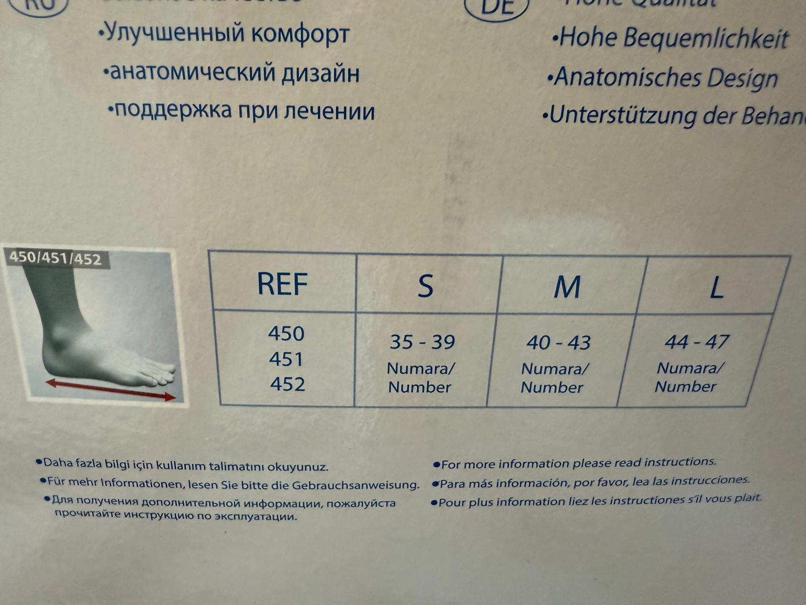 Kutunun üzerindeki bilgilere göre ürün S bedendir. Aynı kutu üzerinde yer alan beden tablosunda, S bedenin 35-39 arası ayakkabı numaraları ile uyumlu olduğu belirtilmektedir. Bu, ürünün yetişkin kullanıcılar için tasarlandığını göstermektedir.
