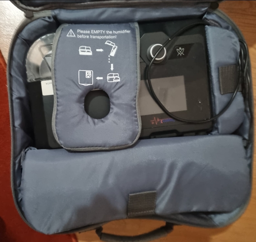 Görsellerde yer alan ürün, solunum terapisi ve uyku apnesi tedavisinde kullanılan, medikal bir cihazdır. Ürün, entegre nemlendirici haznesine sahip bir PAP (Pozitif Havayolu Basıncı) cihazıdır. Cihaz; ana ünite, ısıtıcılı nemlendirici haznesi, solunum hortumu, güç kablosu ve özel taşıma çantası ile birlikte set halindedir. Görüntülenen sistem, evde bakım ve klinik ortamlarda solunum desteği sağlamak amacıyla tasarlanmıştır.