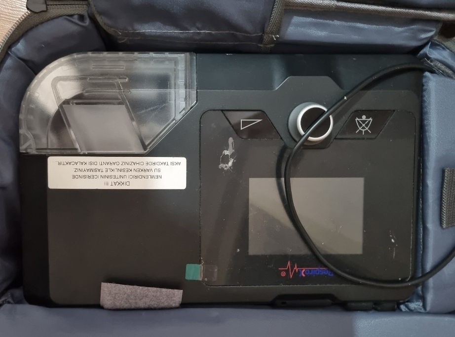 Cihaz üzerindeki logoların baskı kalitesi, tuş takımının düzeni, kullanılan malzeme yapısı ve orijinal taşıma çantasıyla uyumu incelendiğinde ürünün orijinal bir RespiroX cihazı olduğu değerlendirilmektedir. Çanta içerisindeki uyarı etiketlerinin (Please EMPTY the humidifier…) profesyonel basımı ve yerleşimi, ürünün orijinal üretim standartlarını yansıttığını göstermektedir.