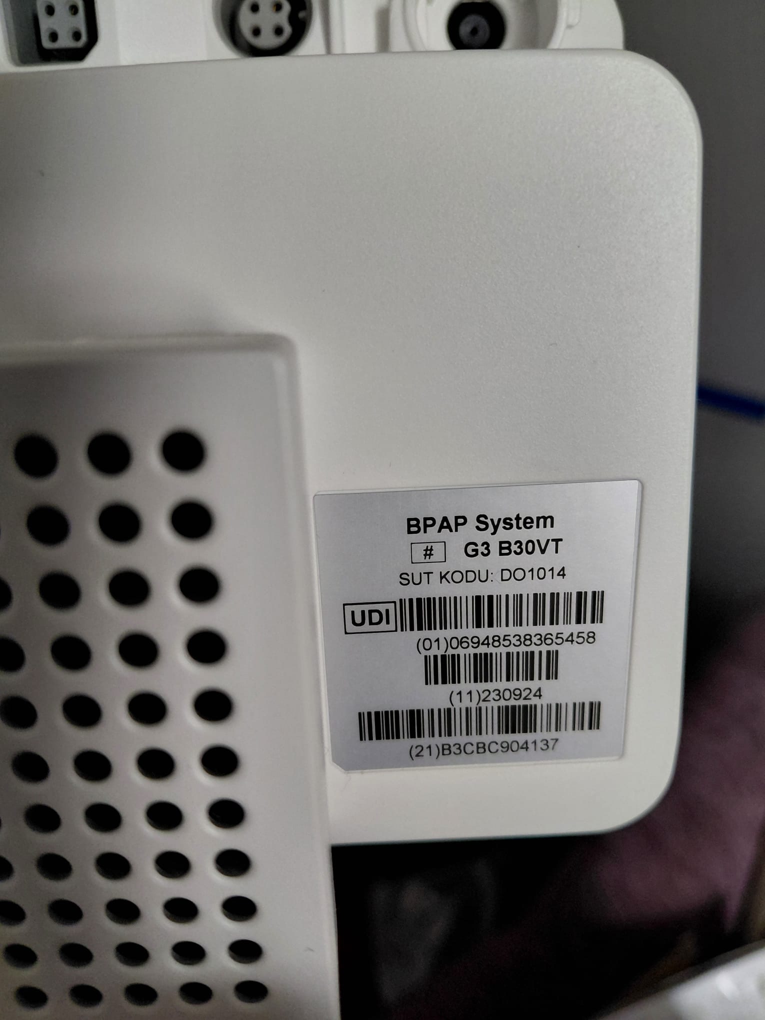 Cihazın markası Respirox, modeli ise G3 B30VT olarak tespit edilmiştir. Bu bilgi cihazın ön panelindeki logodan ve arka kısmında yer alan üretici etiketinden doğrulanmıştır.
