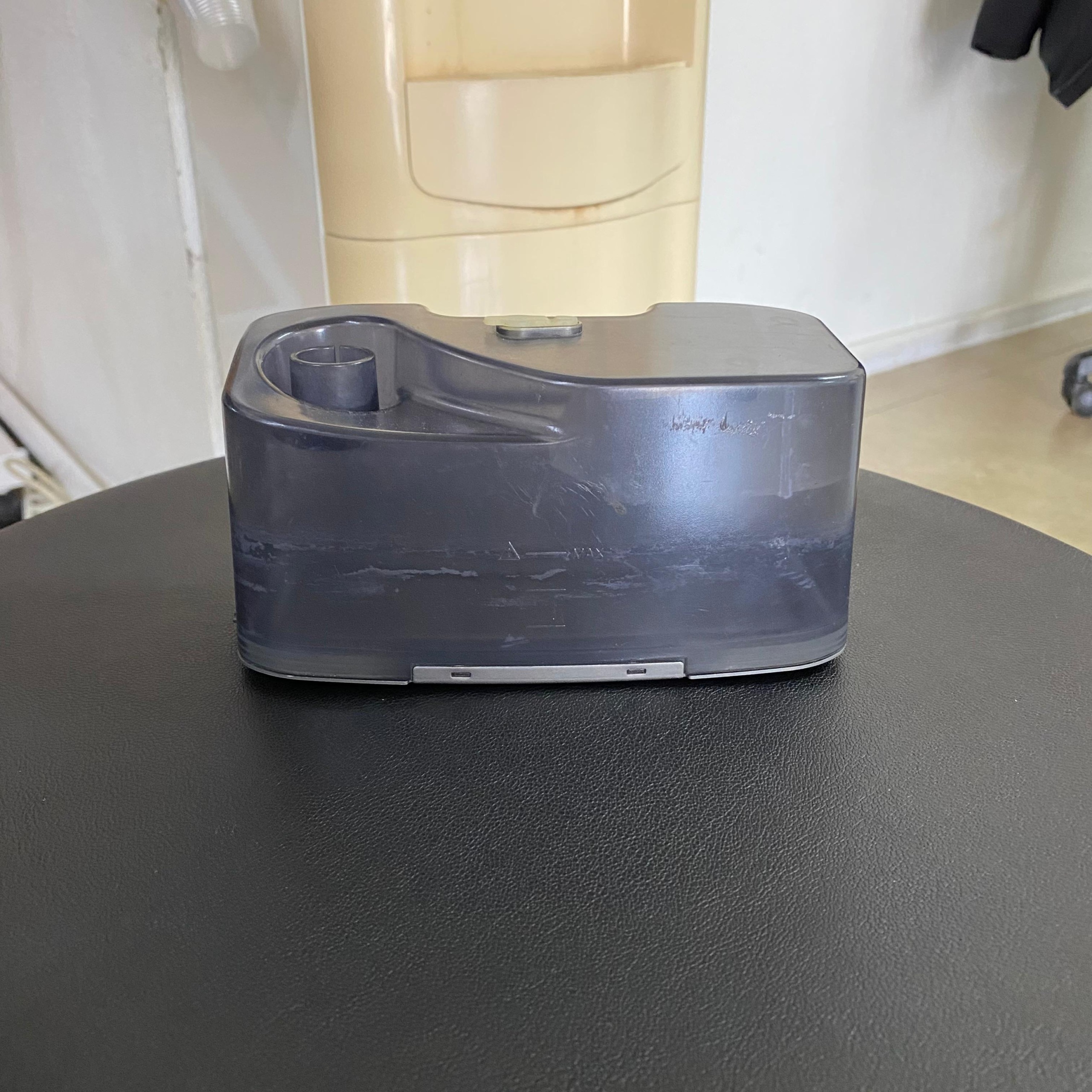 Görsellerdeki ürün, CPAP veya BiPAP türü mekanik ventilatör cihazlarında kullanılan, hastaya iletilen havayı nemlendirmeye yarayan harici su haznesidir.