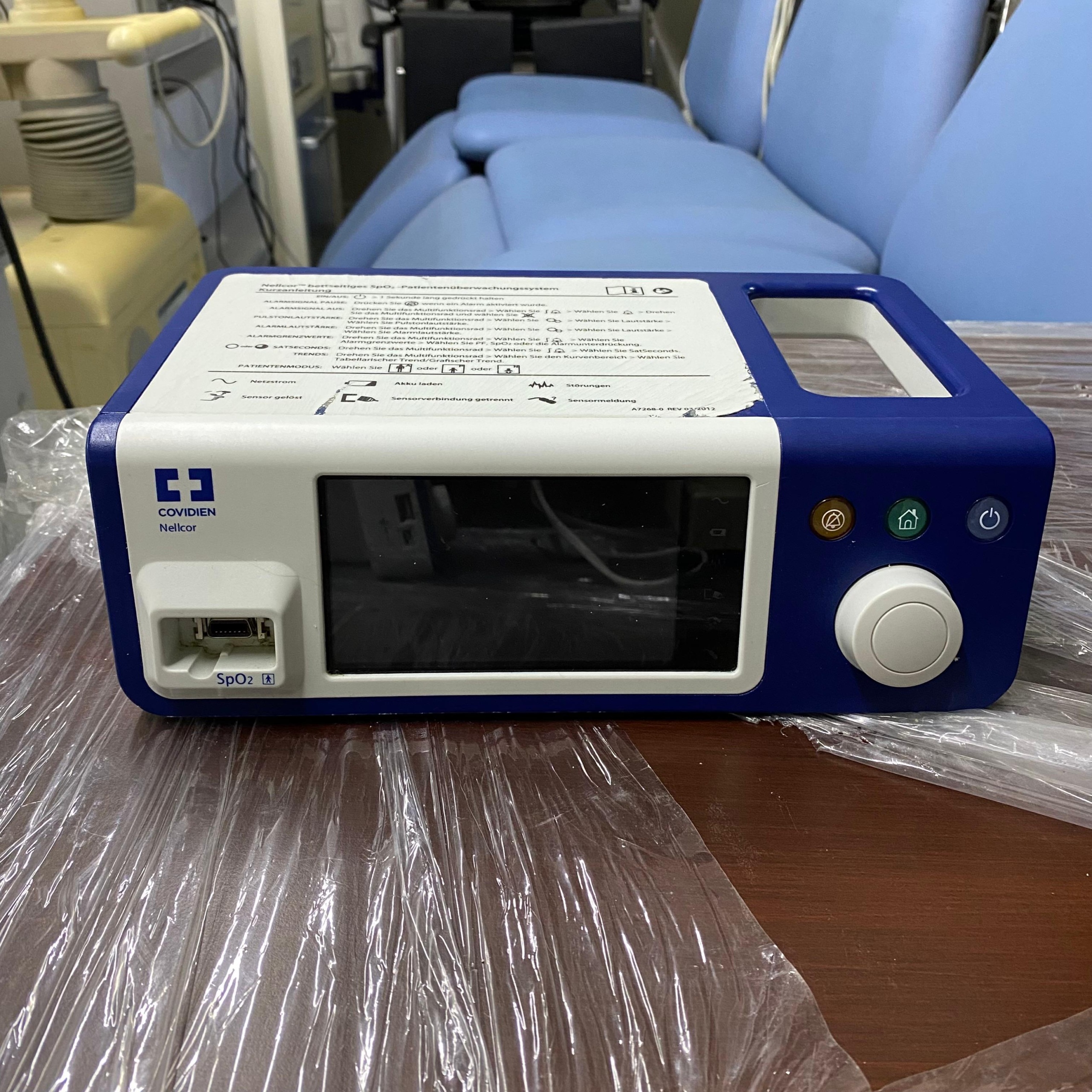 - Model Tanımı: Cihazın üst etiketinde Almanca olarak “Nellcor™ bettseitiges SpO2-Patientenüberwachungssystem” (Nellcor Hasta Başı SpO2 Hasta İzleme Sistemi) ibaresi yer almaktadır. Ön panelde ise “SpO2” bağlantı noktası net bir şekilde belirtilmiştir.