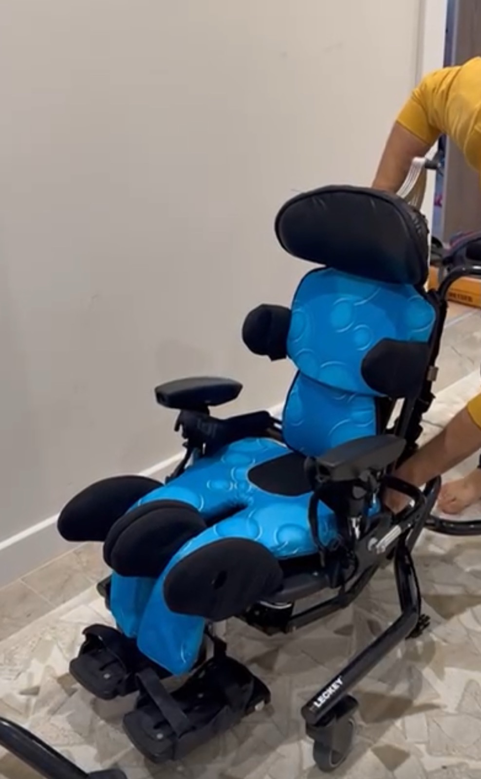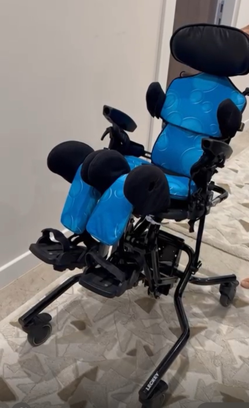 - 1 adet mavi renkli Leckey marka pediatrik aktivite sandalyesi