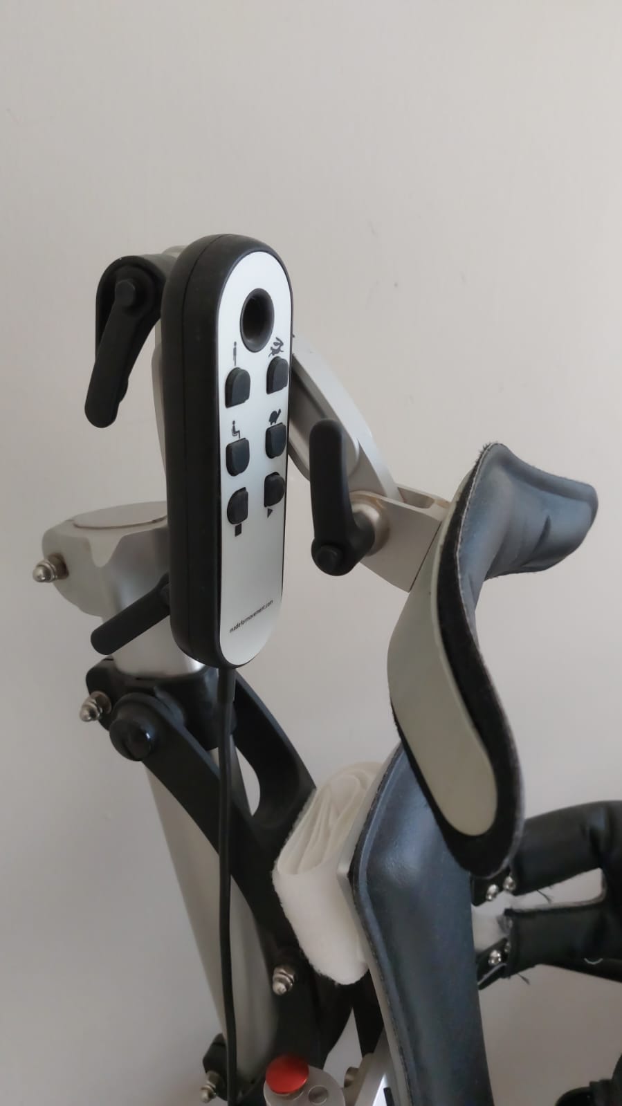 Görsellerdeki ürün, hareket kabiliyeti sınırlı bireyler için tasarlanmış, motorlu ve dinamik bir ayakta durma ve yürüme destek cihazıdır. Cihaz, kullanıcıyı dikey pozisyonda destekleyerek rehberli ve tekrarlı adım atma hareketini mümkün kılmaktadır. Ürün; gövde, kalça ve bacaklar için sağladığı kapsamlı destek sistemi sayesinde kullanıcının güvenli bir şekilde egzersiz yapmasına olanak tanır. Bu tür cihazlar, genellikle fiziksel rehabilitasyon ve hareketliliği artırma amacıyla kullanılır.