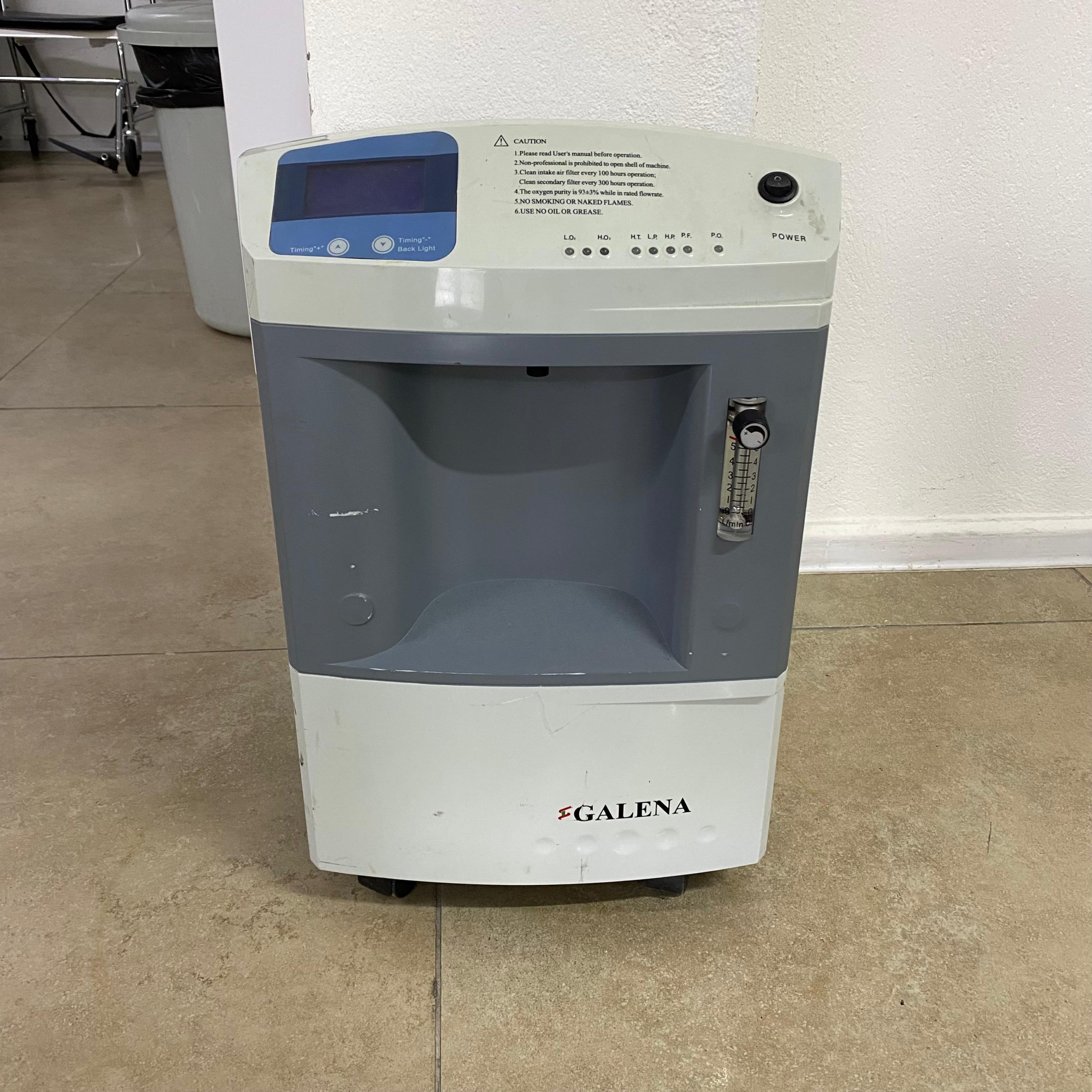 Görsellerde yer alan ürün, tıbbi amaçlı kullanıma yönelik bir oksijen konsantratörüdür. Cihaz, ortam havasından aldığı havayı işleyerek yoğunlaştırılmış oksijen üretir ve solunum desteğine ihtiyaç duyan kullanıcılar için kullanılır. Görselde bir adet Galena marka oksijen konsantratörü bulunmaktadır. Herhangi bir ek aksesuar, kutu veya belge mevcut değildir.
