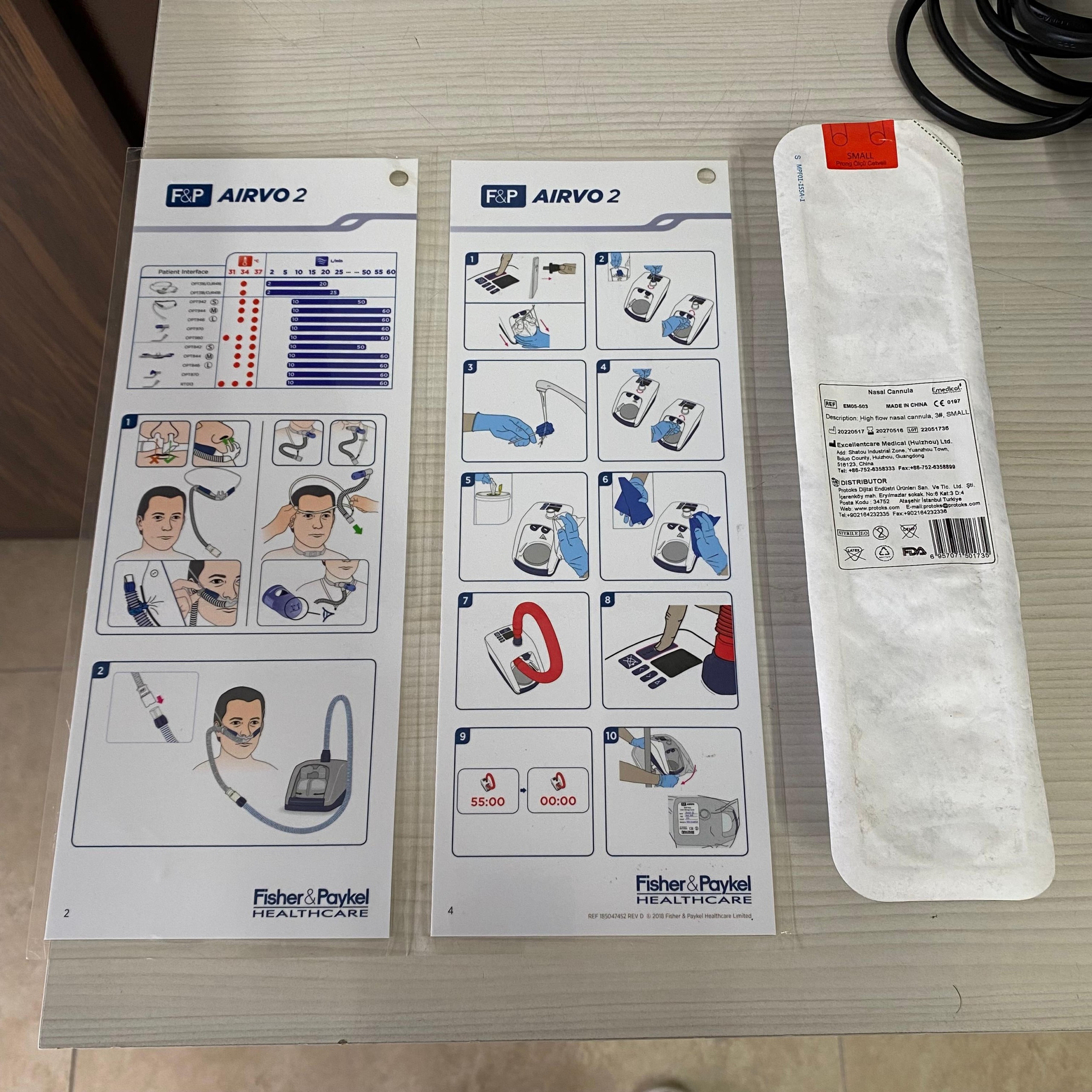 Cihazla birlikte “F&P AIRVO 2” başlıklı, renkli ve resimli hızlı kullanım kartları mevcuttur. Bu kartlarda: